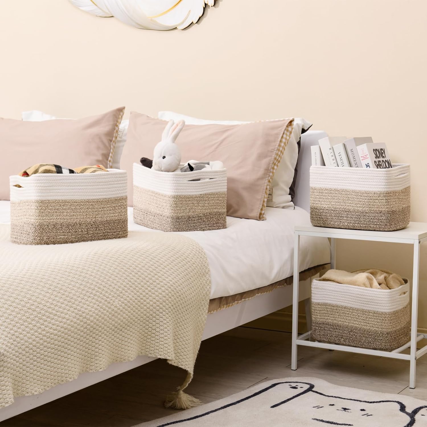 - SPACE SAVING SOLUTION: ICERZCZ 4 Pack cotton rope basket compact size and large storage capacity will help you maximize available space while keeping your belongings organized and easily accessible at all times