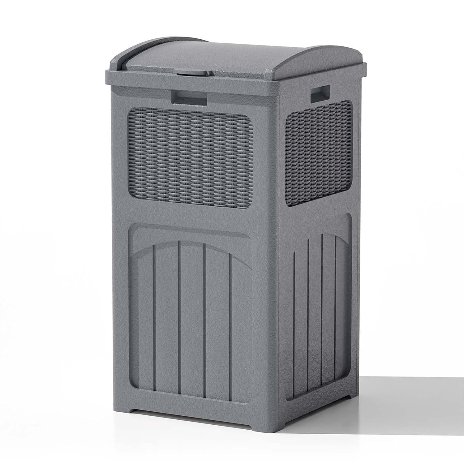 Patiowell 36 Gallon Outdoor Trash Can, Resin Outdoor Garbage Can with Lid for Patio, Backyard, Deck, Gray