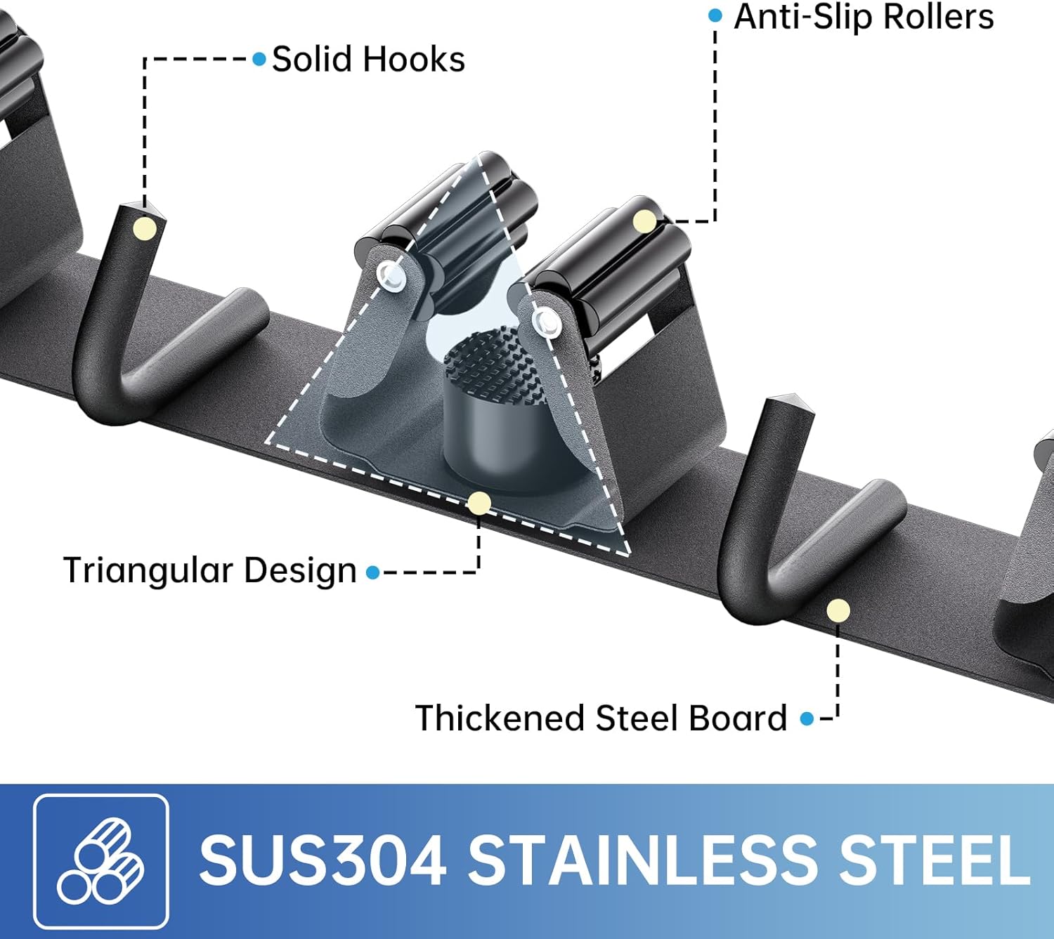 - 🏡【STURDY BROOM HOLDER】Each broom holder wall mount has 3 racks 4 hooks. Made of sturdy 304 stainless steel, the broom holder is corrosion-resistant, rustproof and waterproof. Compared with the plastic broom rack, it is more stronger and has a longer service life.
