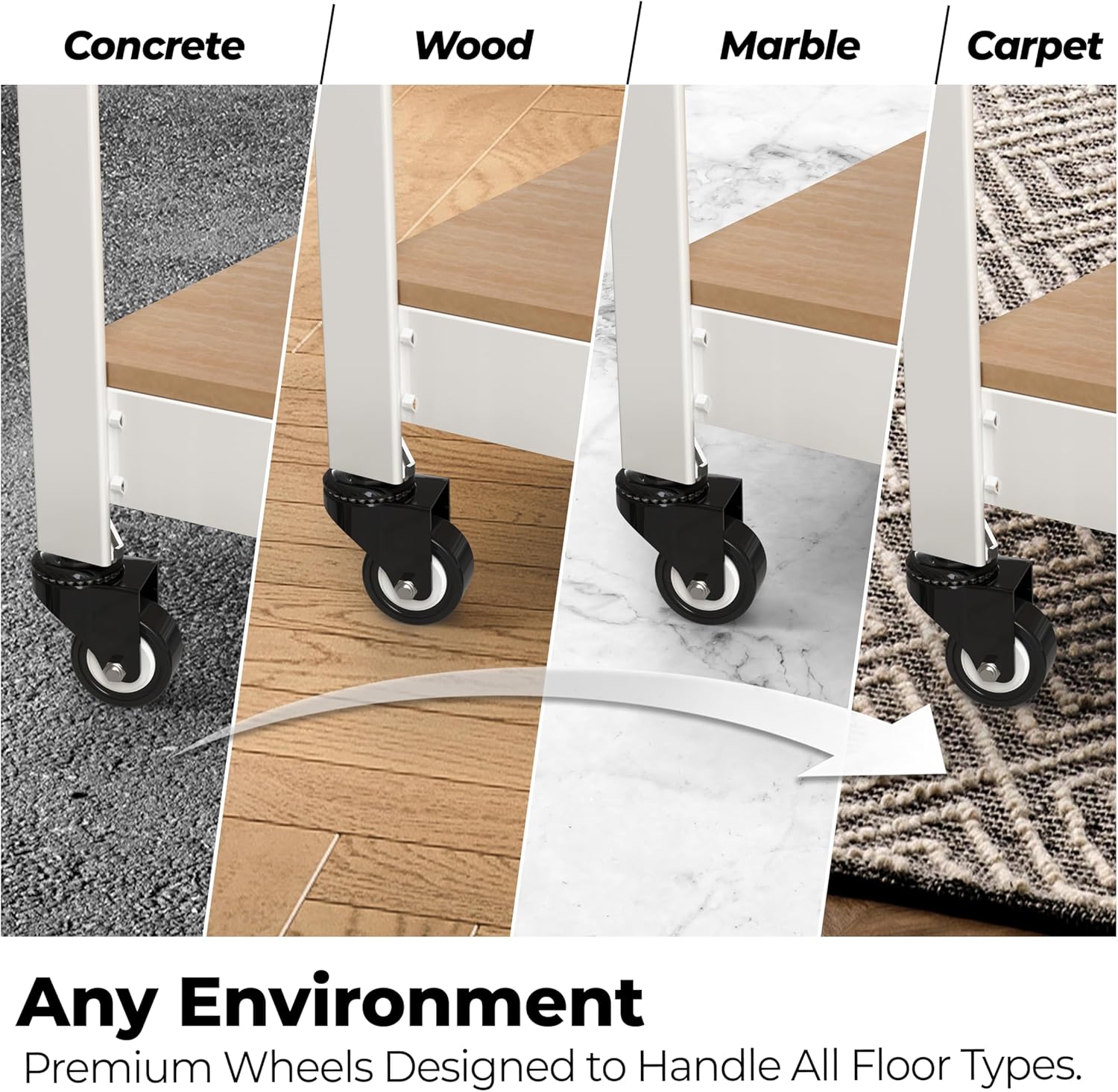 HOMEDANT House White 5-Tier Metal Rolling Cart Shelf Rack Casters Heavy Duty Wheel Shelving Unit Adjustable Utility Storage Shelves Organizer Shelf Kitchen Garage 24.4" W x 16.5" D x 62.2" H 4Pack