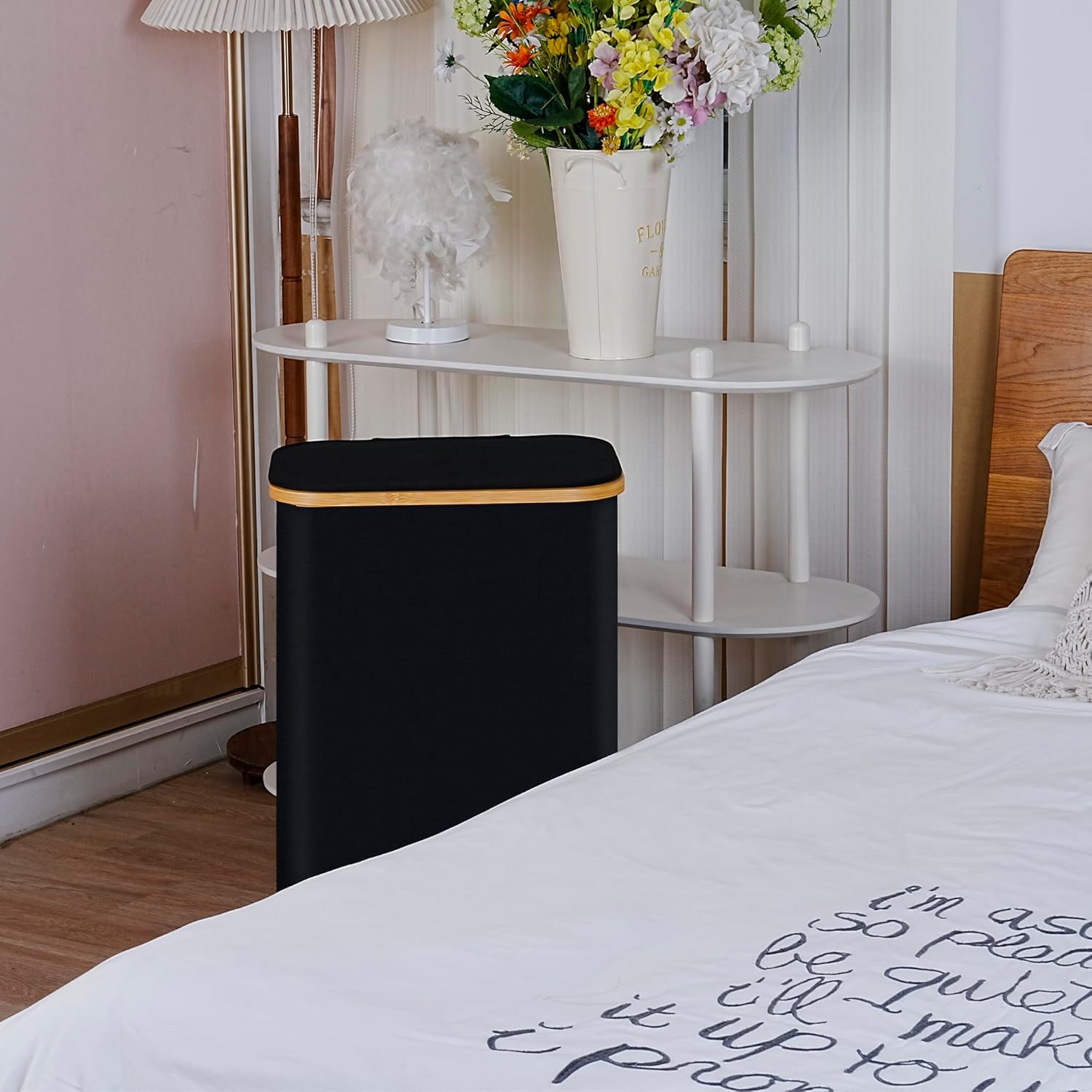 100L Laundry Hamper with Lid, Lagre Basket with Bamboo Handles,Foldable Clothes Hamper Tall Dirty Laundry Basket for Clothes Toys Towels Organizing,Black
