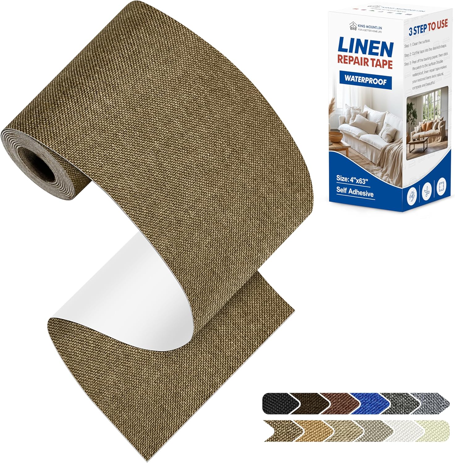 KING MOUNTAIN Linen Repair Patches, Self-Adhesive Fabric Patches, 4 X 63 inch Extra Size, Multi Color, Can be Used for Sofa Repair and Linen Clothes Repair (Brown)