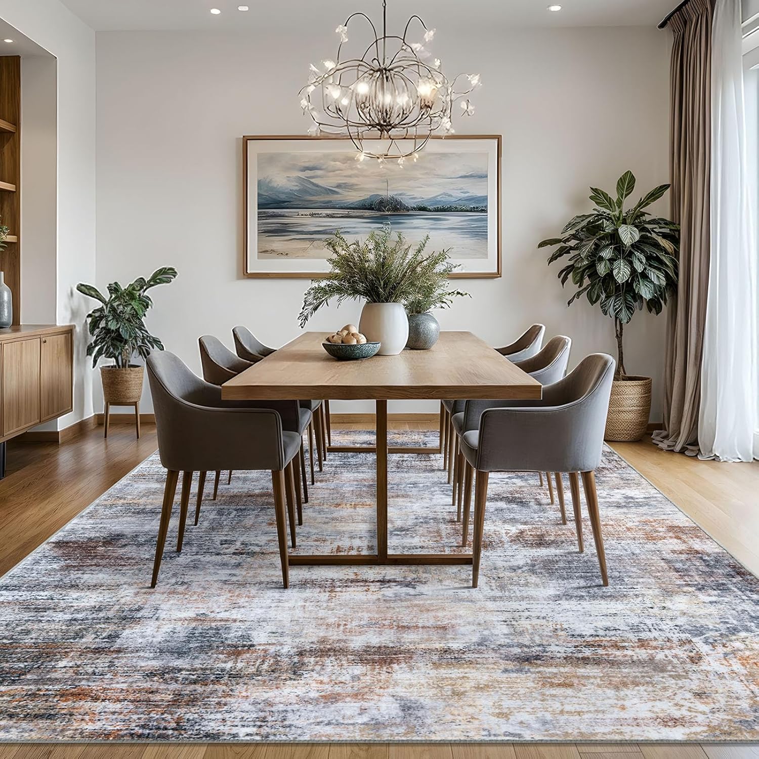 - Machine Washable: This dining room rug is machine washable for easy maintenance, keeping it fresh and vibrant without the need for manual cleaning. Noted: When vacuuming, use a low setting or a robotic vacuum to prevent shifting or bunching