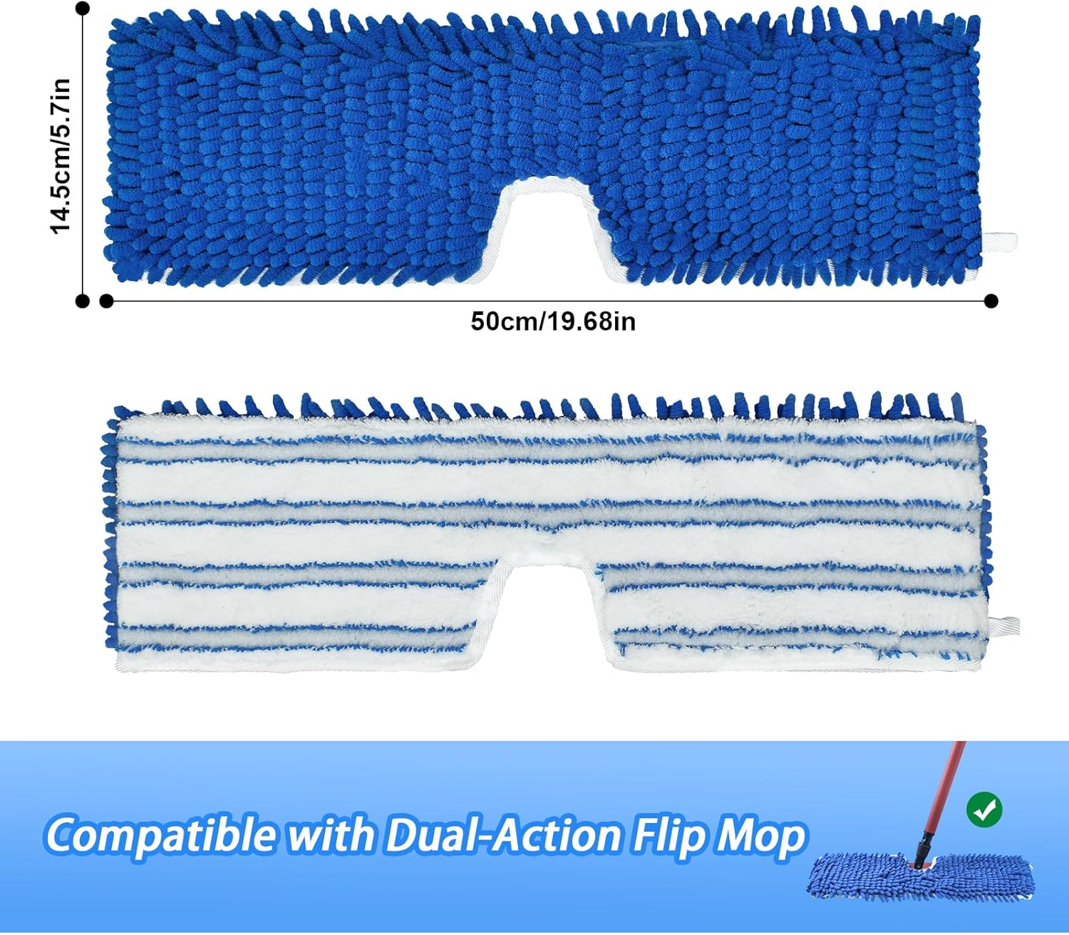 - 【Compatibility】:Mop refills compatible with O-cedar Dual-Action Flip Mop,Not for Oceda Promist MAX Spray Mop,Please confirm your mop model before ordering.Material:microfiber and chenille.Size:19.68in X 5.7in.Package weights:1.2lb(4 pack)