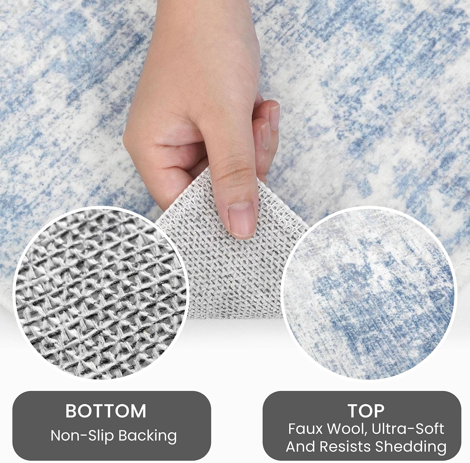 IOHOUZE Abstract Runner Rug 2x6 Ft Washable Runners for Hallways, Non Slip Kitchen Runner Printed Faux Wool Entryway Runner Indoor, Modern Abstract Floor Carpet for Hall Bedroom, Light Blue White