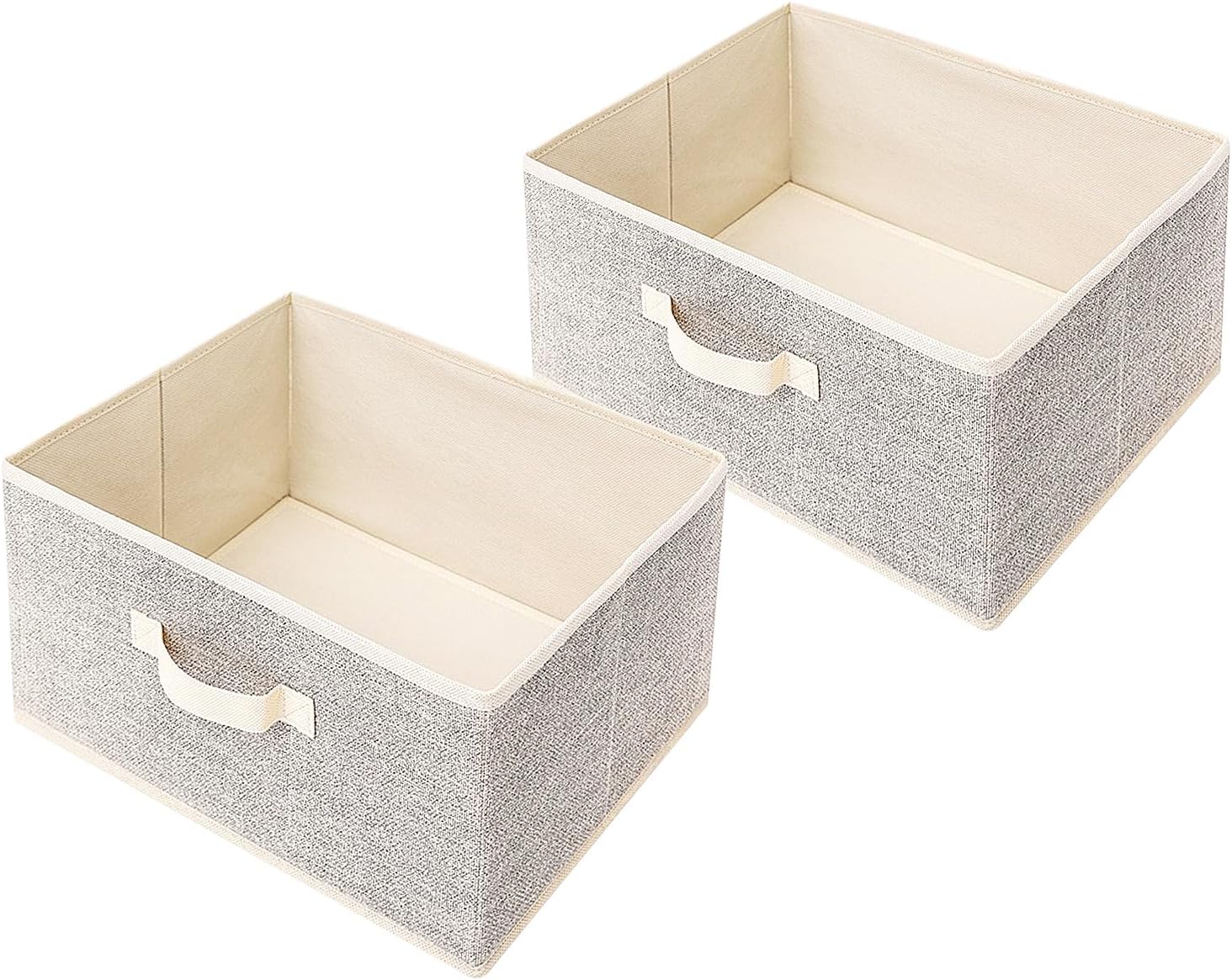 Storage Baskets, 15.7 Inch Woven Fabric Bins, Storage Cubes with Reinforced Handles, Organizer Bins for Closet Shelves, Foldable, Clothes. (2PCS/Beige-15.7*11*7.8inch)