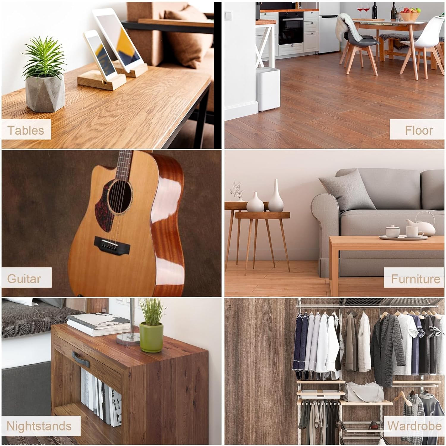 - Wide Application:This furniture touch up kit is ideal for wood furniture repair,suitable for scratches,stains,scuffs,discoloration and nail holes on the surface of wooden veneers,desks,wooden floors, cabinets, tables,doors,etc.You can repair all levels of damage by yourself with this wood furniture repair kit.