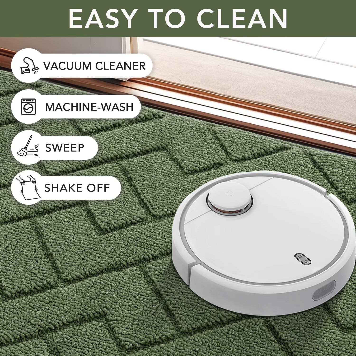 - EASY TO CLEAN: The unique rib fabric design removes dirt from shoes easily. When your doormat gets dirty, first shake it off outdoors or over your garbage bins, then sweep with a broom or vacuum regularly or use a garden hose to rinse the mat outdoors. For deeper clean: machine washable, use water under 86 (℉) / 30 (℃). Do not iron. Do not bleach. Do not expose it to the sun for a long time.