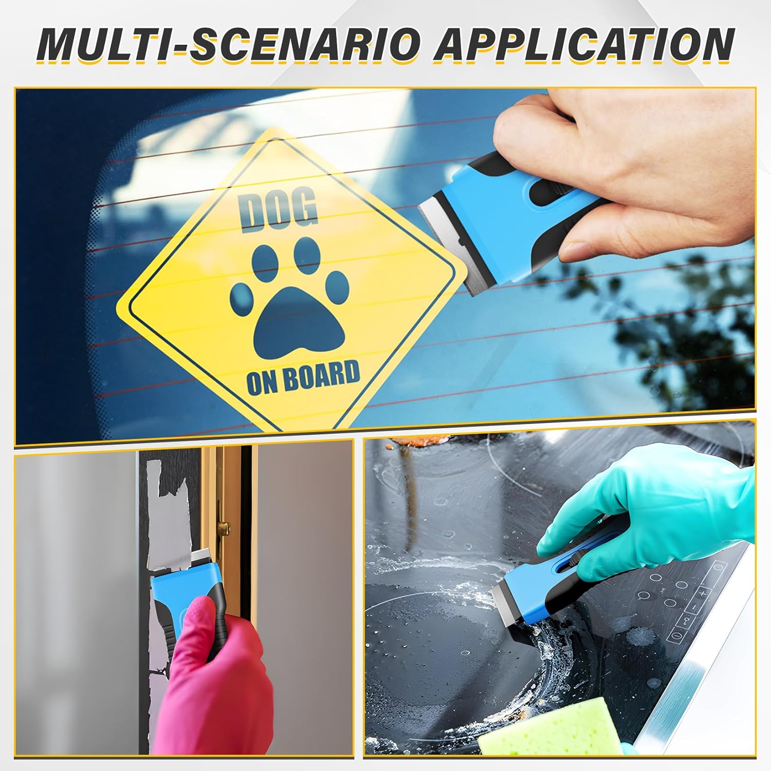 - Multi-Purpose Scraper for Cleaning: This razor scraper tool for glass is perfect for tackling tough cleaning tasks on glass, ceramic, metal, and more. It efficiently removes burnt food from stovetops, stubborn stickers from car windows, and old paint or caulk from walls and floors. Whether you're working in the kitchen, bathroom, or garage, this glass top stove scraper tool for glass provides a reliable solution for removing unwanted residues and debris.