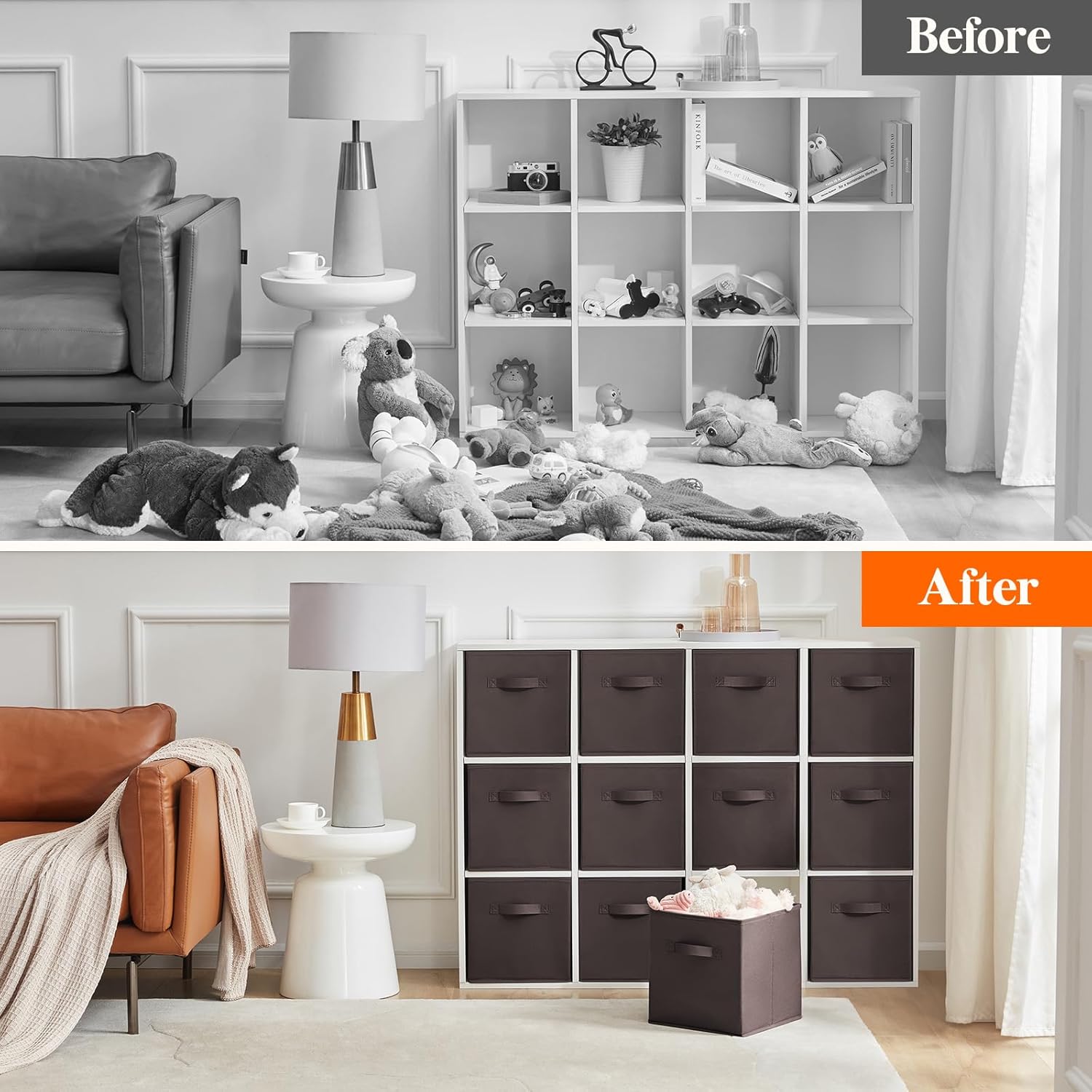 Lifewit 12 Packs Storage Cubes, 11 Inch Cube Storage Bins, Foldable Decorative Fabric Storage Baskets for Organizing Home Organizers with Handles for Shelves, Closet, Brown