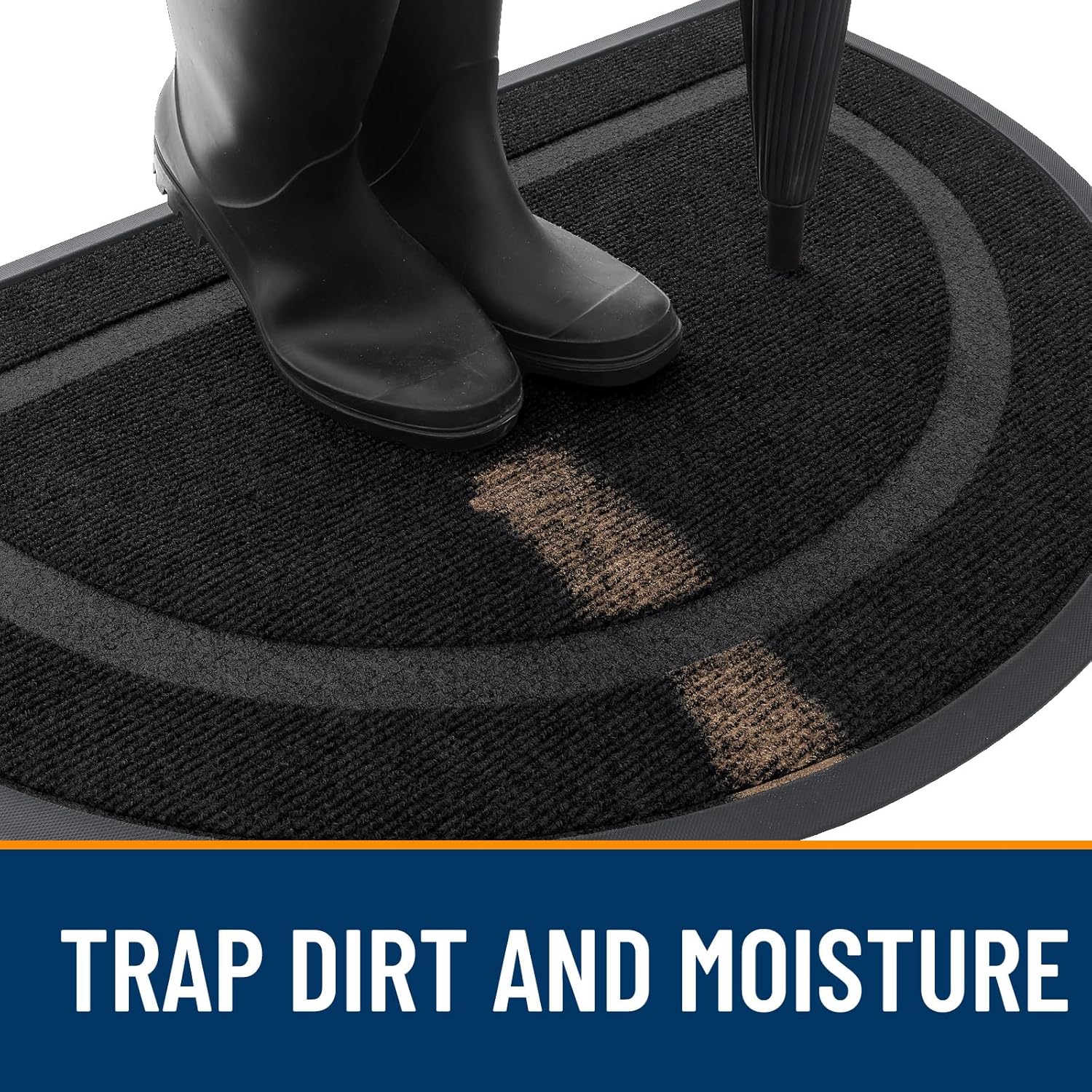 OLANLY Half Circle Door Mat Indoor Outdoor Entrance Welcome, Waterproof All-Season, All-Weather Doormat, Sturdy Natural Rubber, Low Profile, Easy Clean Patio Porch Entryway Mat, 29.5x17, Black
