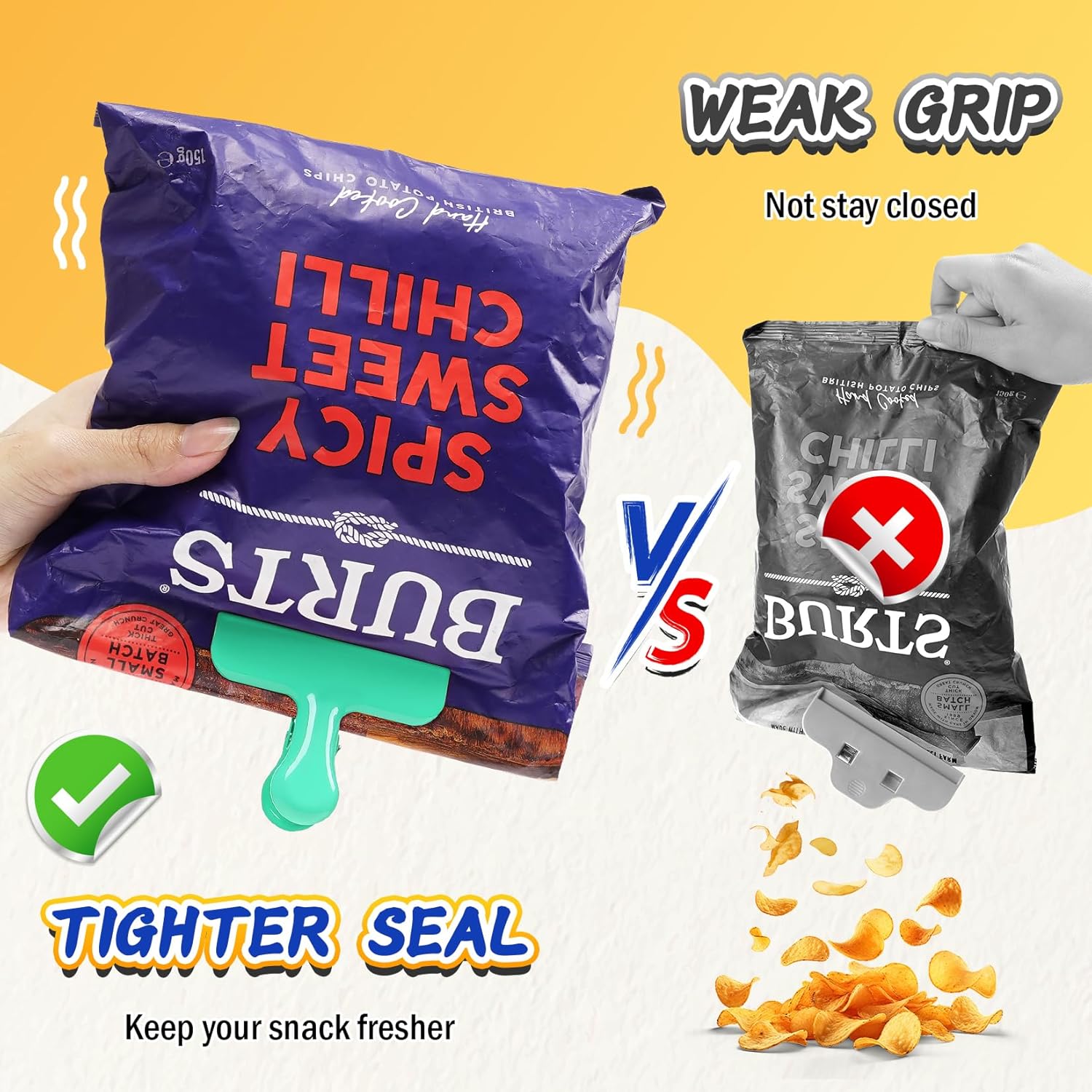 - 【Secure Seal】Made from stainless steel, including the spring, these chip bag clips ensure a tight seal for various bags, from snacks to frozen vegetables.