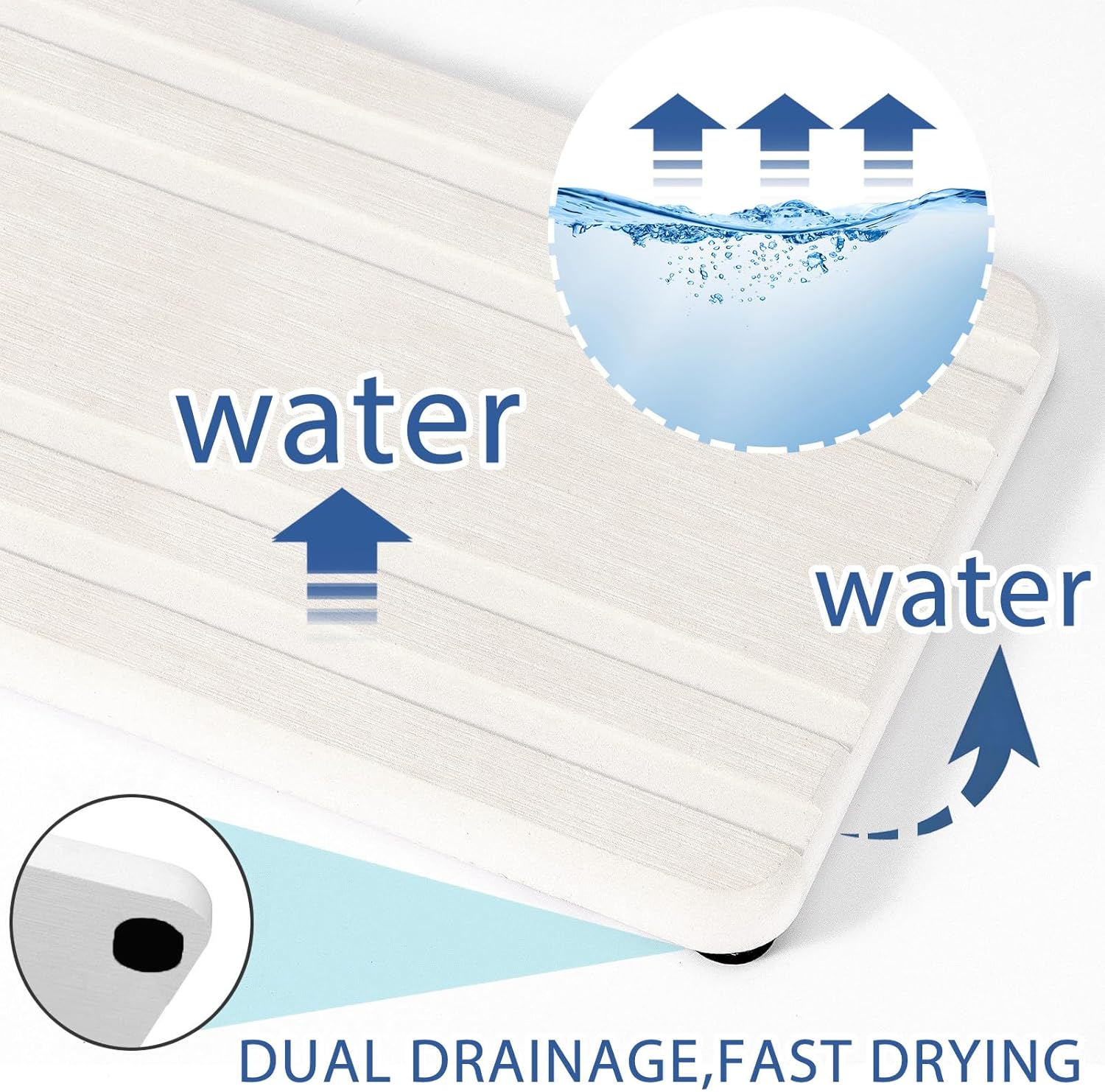 - Upgraded Stripe Design & More Textured --- The strip shaped groove design on the surface of the quick dry stone sink tray accelerates water absorption and evaporation, and has an anti slip effect. At the same time, the upgrade of details and materials makes the fast drying stone tray more textured.