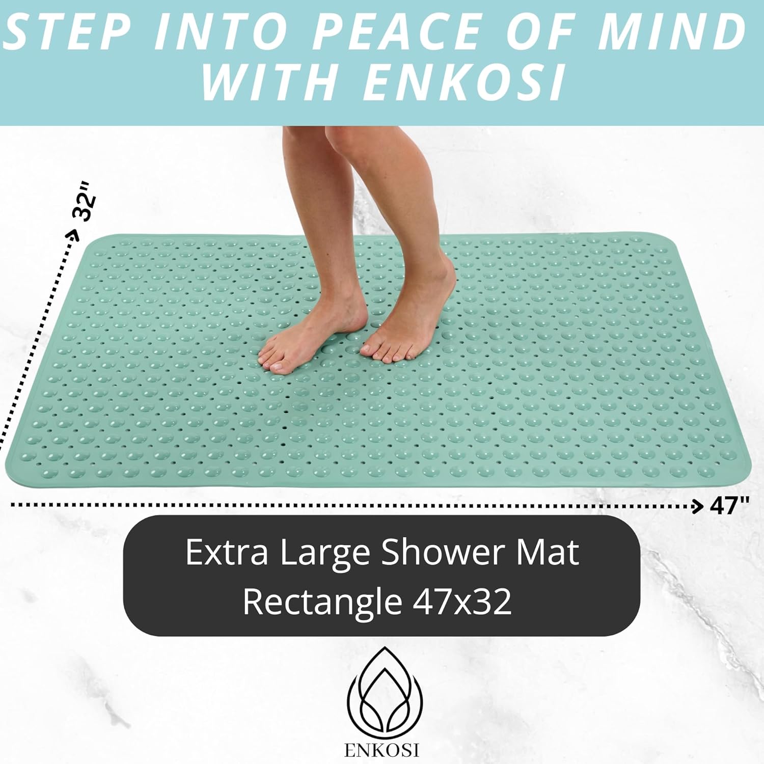 ENKOSI Extra Large Shower Mat Non Slip - 47 x 32 inch - XL Bathroom Shower Mat - Large Shower Matts for Shower Stall Floors - Secure Suction Cups and Drain Holes (47x32 Aqua Green)
