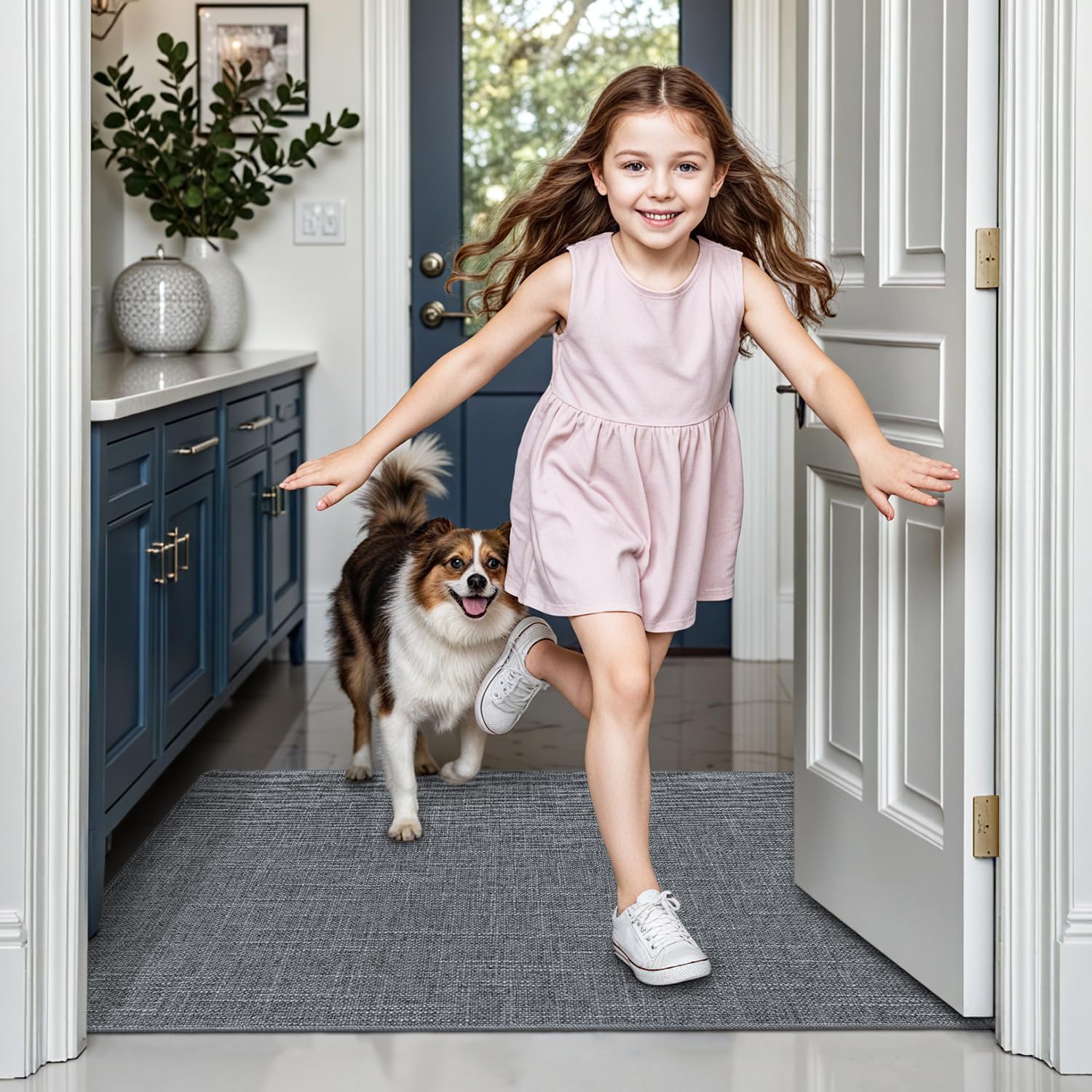 - Ultra Thin Door Mat: This front door rugs indoor comes with low pile design, which allows nearly any low clearing door to pass over with ease. Our low profile door mat is suitable for front door, back door, entryway, indoor entrance, hallway, patio, kitchen, etc
