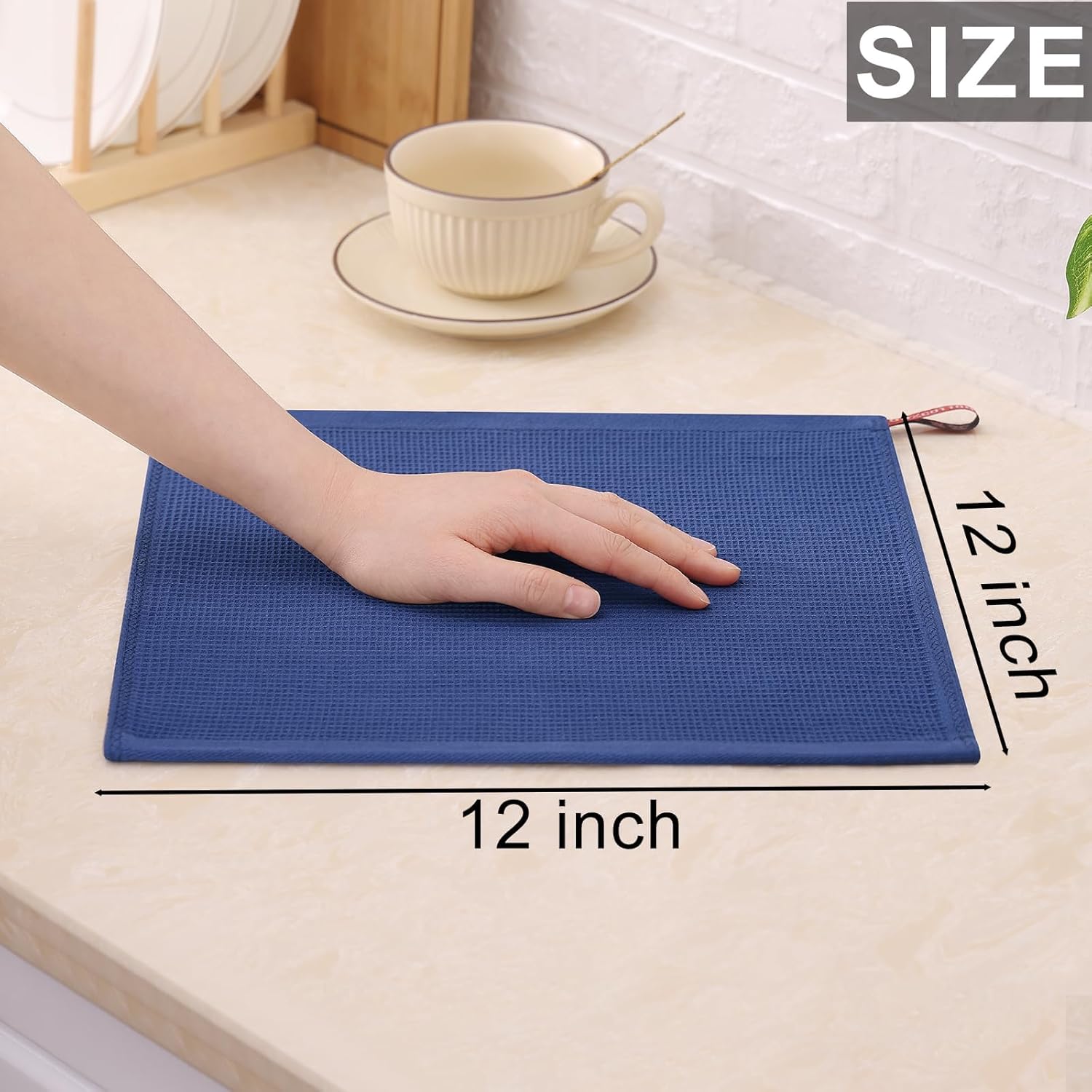Homaxy 100% Cotton Waffle Weave Dish Cloths - 8 Pack Soft and Absorbent Dish Towels - 12 x 12 Inches Quick Dry Dish Rags - Navy Blue