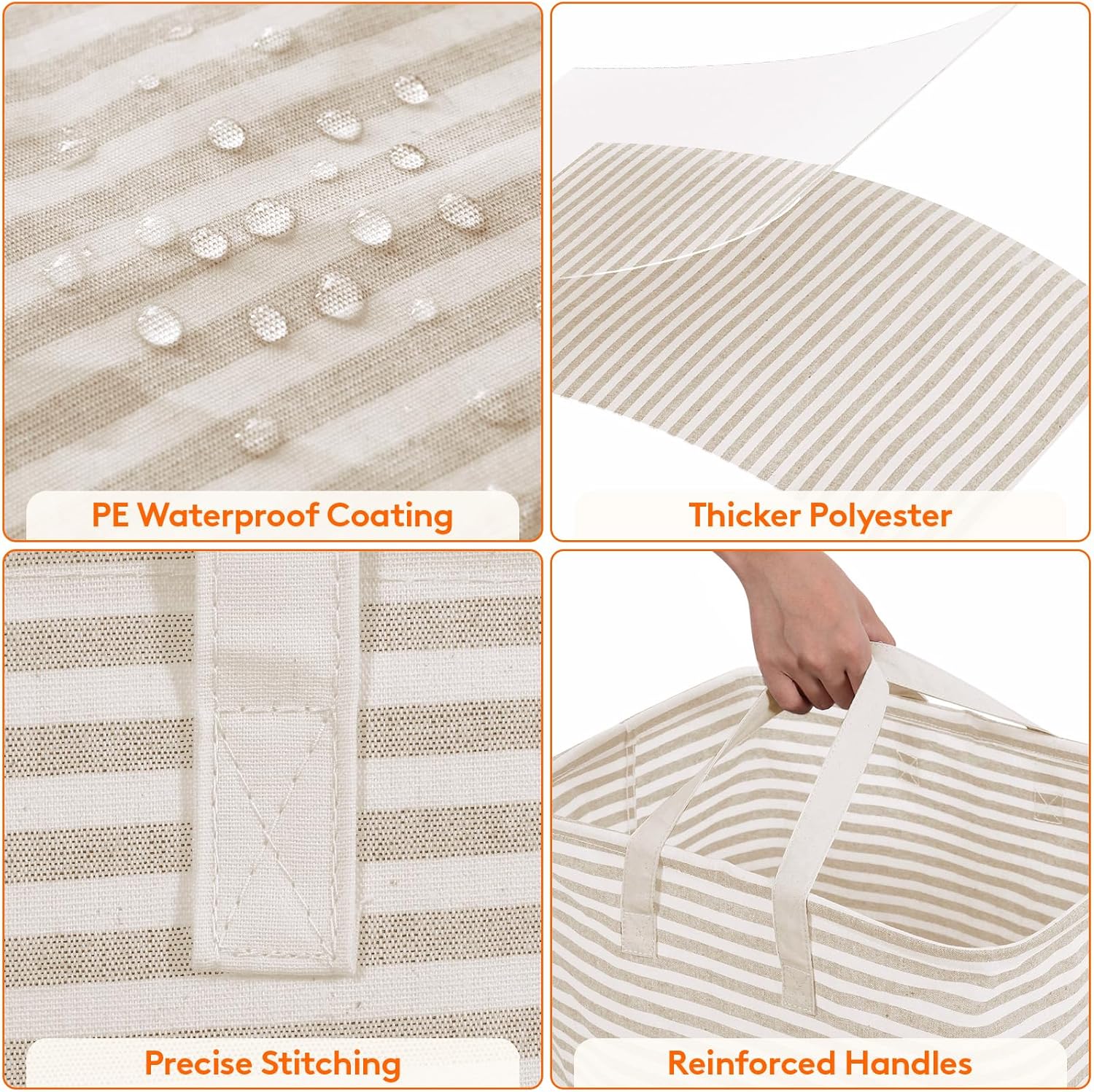 - Premium Material: The foldable clothes basket is made from thick polyester and primuin cotton. The interior features PE waterproof coating can keep stored items dry. Simply use a wet cloth to wipe off the dirt. Do not clean it in washing machine and dryer, as doing so may damage the leakproof PE coating.
