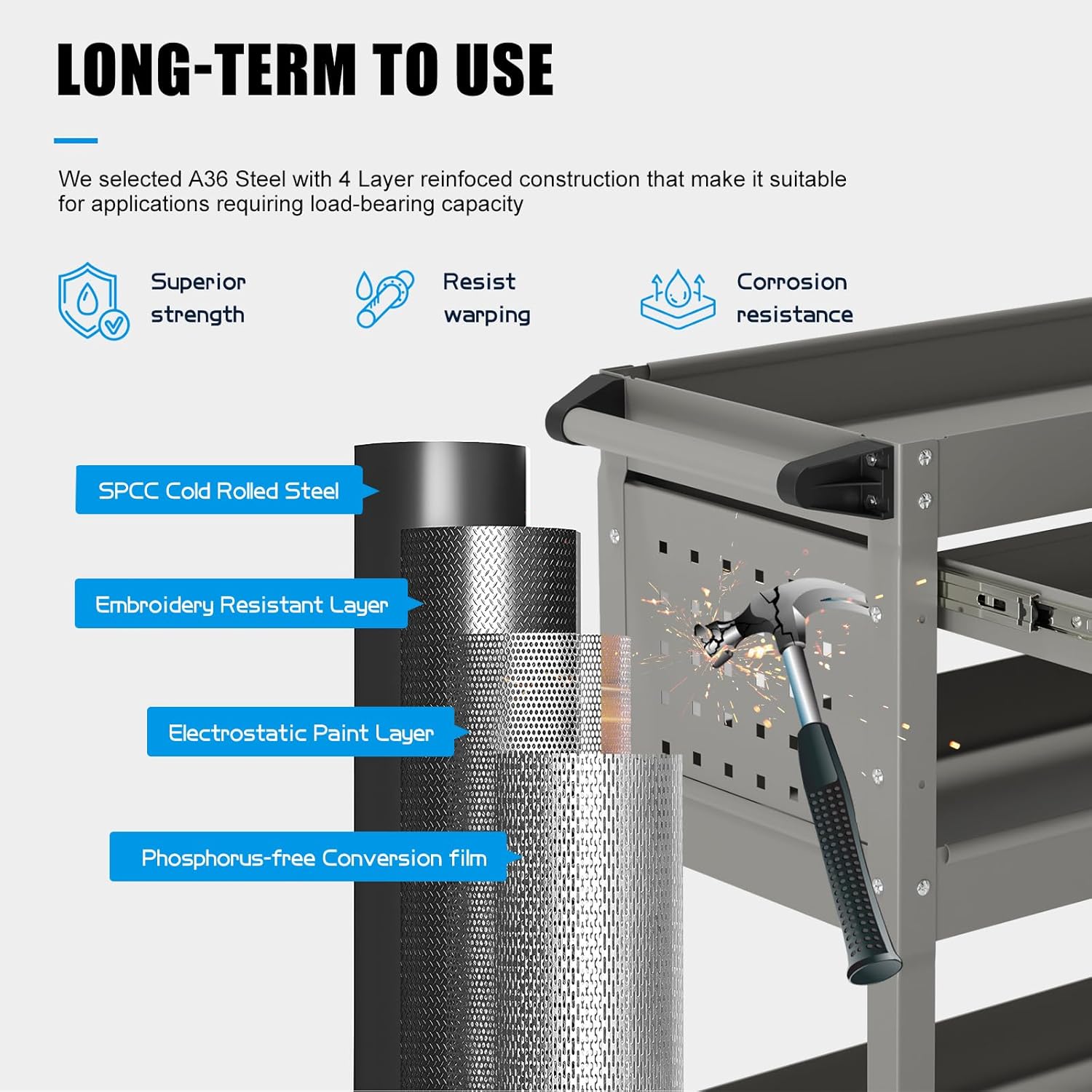 - Durable Construction: Made from high-quality alloy steel with powder coated finished, Maemttes tool cart is built to last. Its sturdy construction can withstand heavy loads and rough handling, providing long-lasting durability and reliability.