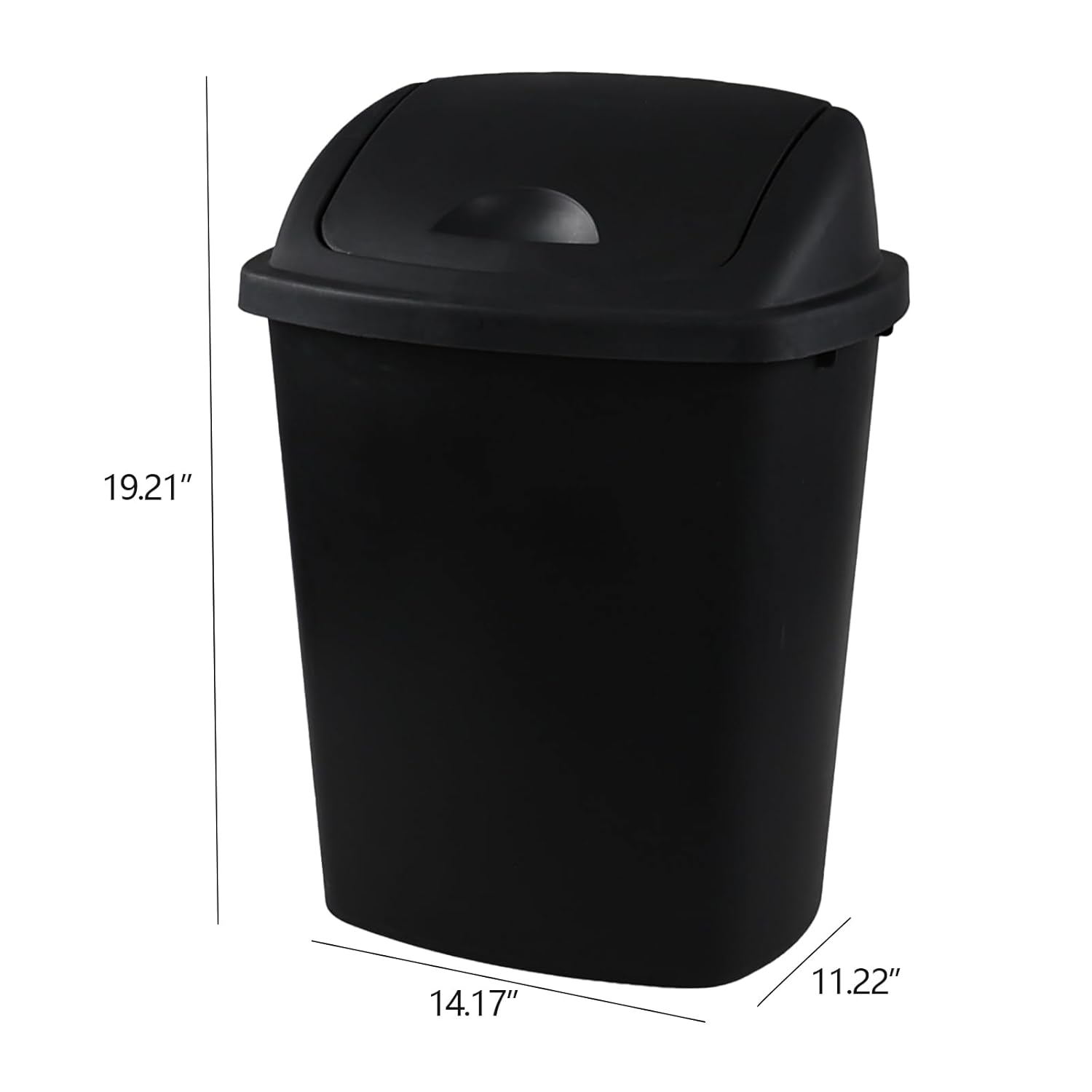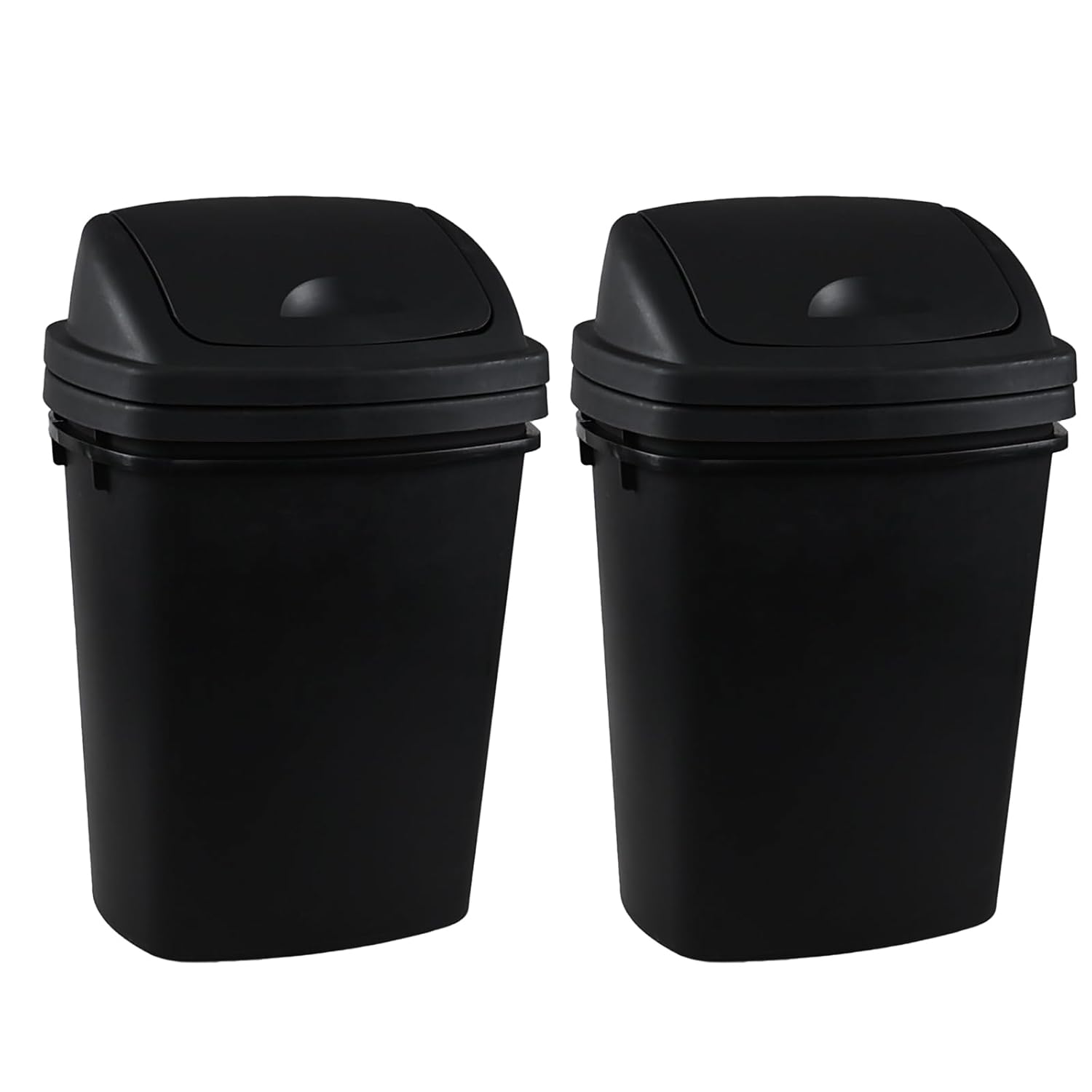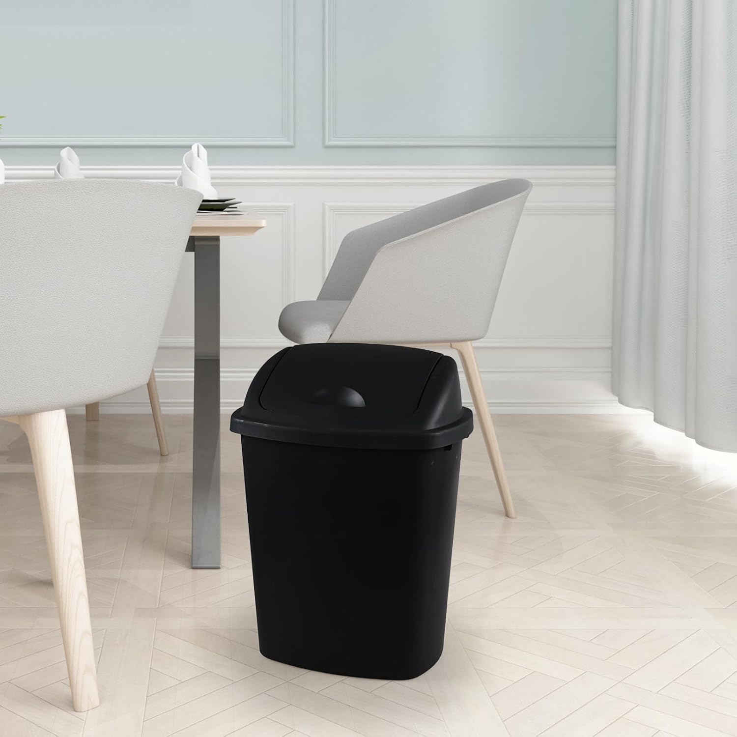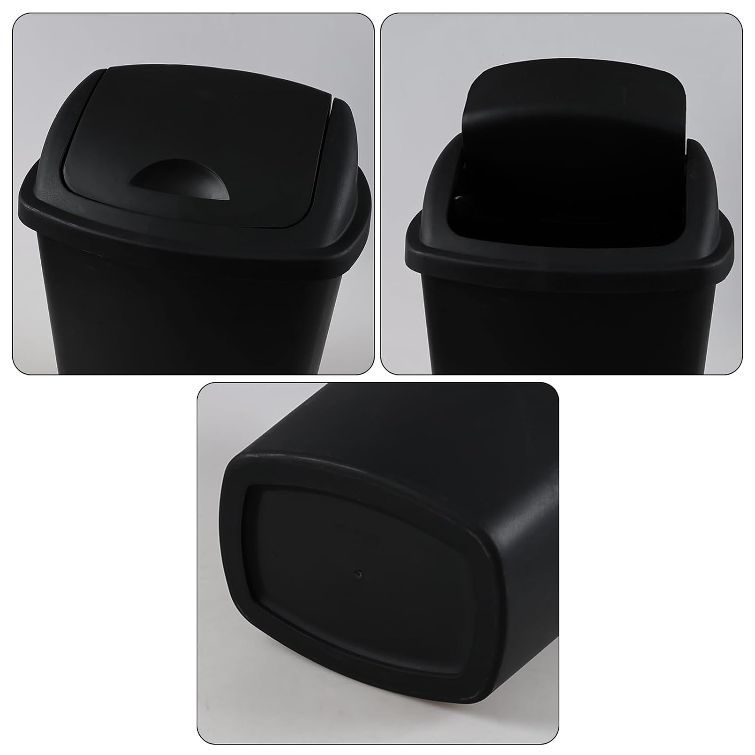 4 Pack 8 Gallon Medium Trash Can with Lid, Plastic Swing Top Garbage Can, Black Waste Bin Waste Basket for Bathroom, Kitchen, Bedroom, Office, College