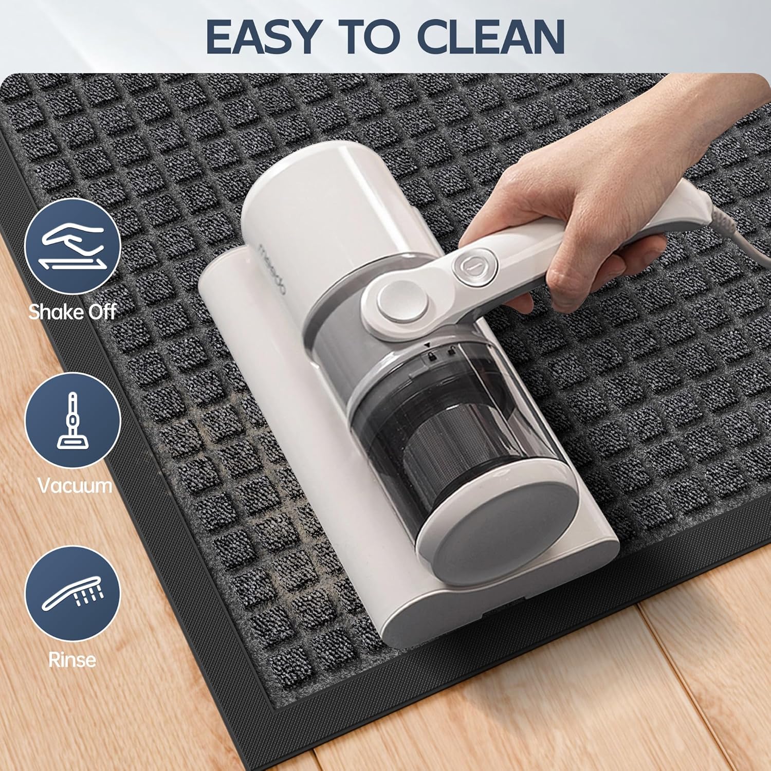 - Easy to Clean: After the washable front entry door mat is used, it can be cleaned regularly as needed, and debris, dust, etc., can be shaken off by hand or cleaned with a vacuum cleaner, broom, etc. If it is sunk into the soil, you can use the water pipe to wash, laid out in the sun to dry, you will get a new clean floor mats. Due to the material problem of the indoor doormat, please do not machine wash to avoid damaging the mat