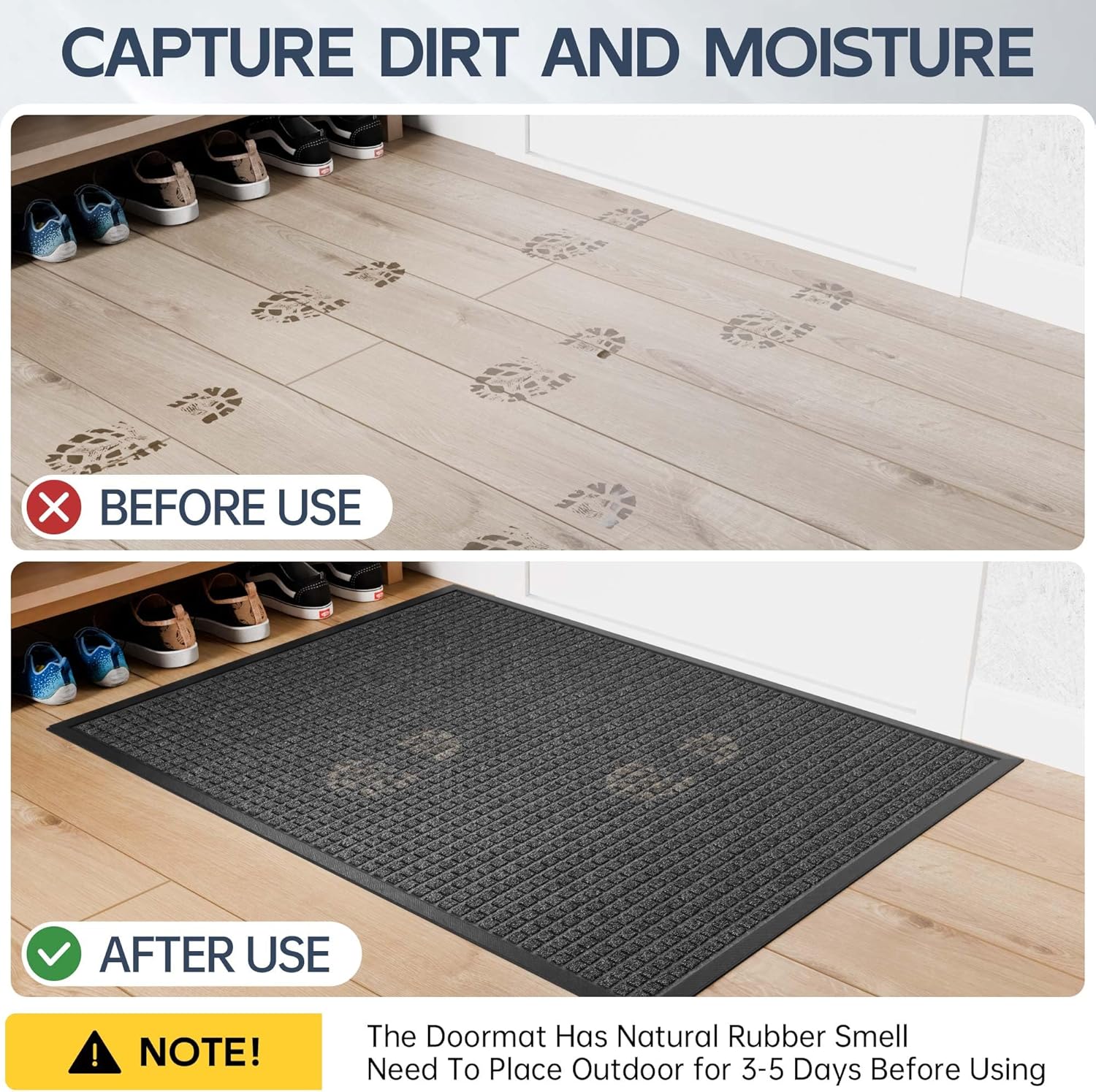 - Trap Dirt & Absorb Moisture: Amyracel welcome doormats incorporates patterned grooves that effectively capture and retain dirt, dust and sand from the soles. In addition, the waterproof all-season all-weather indoor door mat absorbs water and protects the floor from getting wet