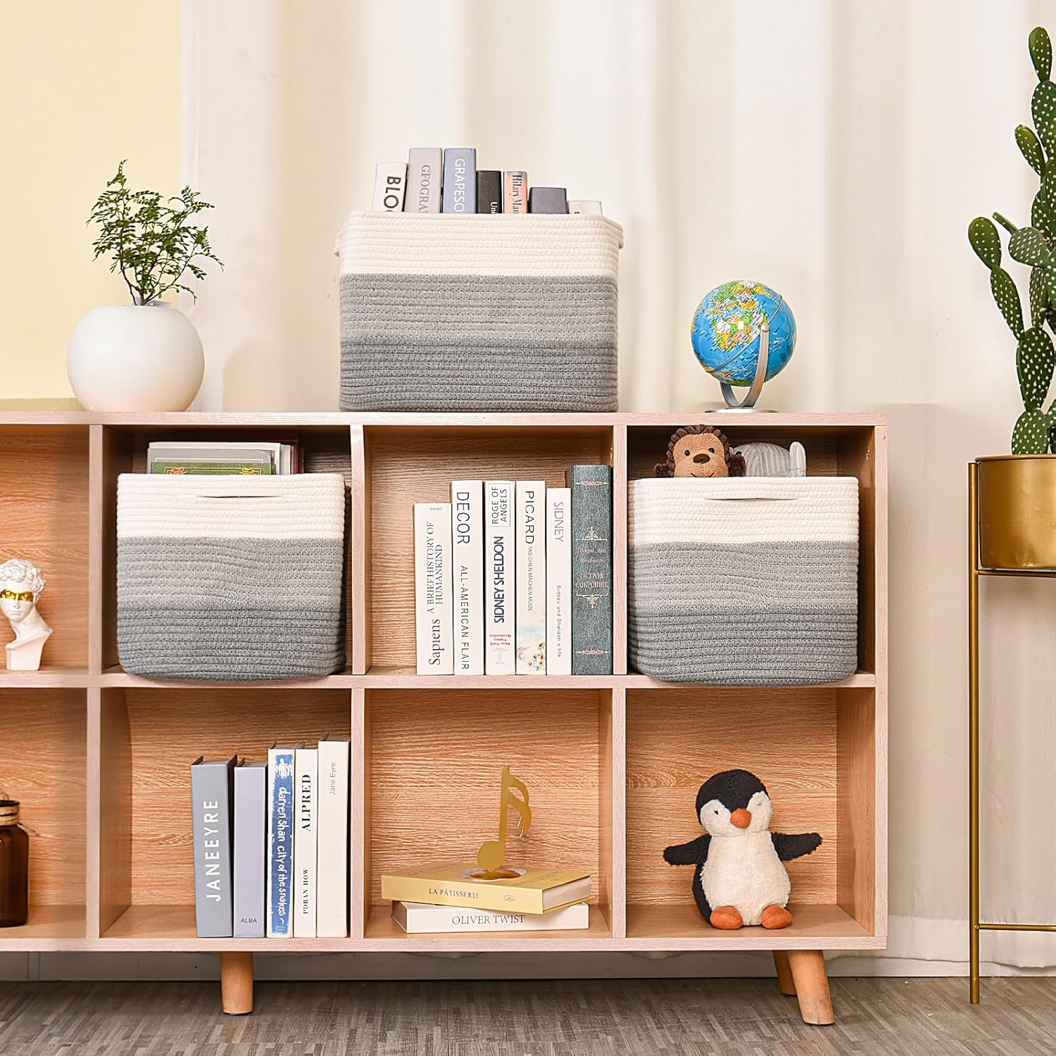 Storage Baskets for Organizing Shelves, Woven Cotton Rope Baskets for Storage Books Towels Toys, Organizing Baskets, Toy Basket for Nursery Bathroom, 15"x11"x9.5", 3 Packs, Gradient Grey