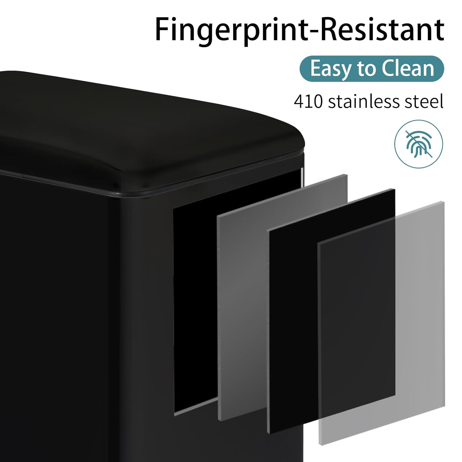 - 【Easy To Clean】 Kitchen garbage can is anti-fingerprint, anti-stain and easy to clean, you just need to wipe the surface of the trash cans with a damp cloth. Inner plastic bucket can be easily removed , it's convenient to empty trash and clean—just lift out, dispose, and wipe down for a fresh new trash can.