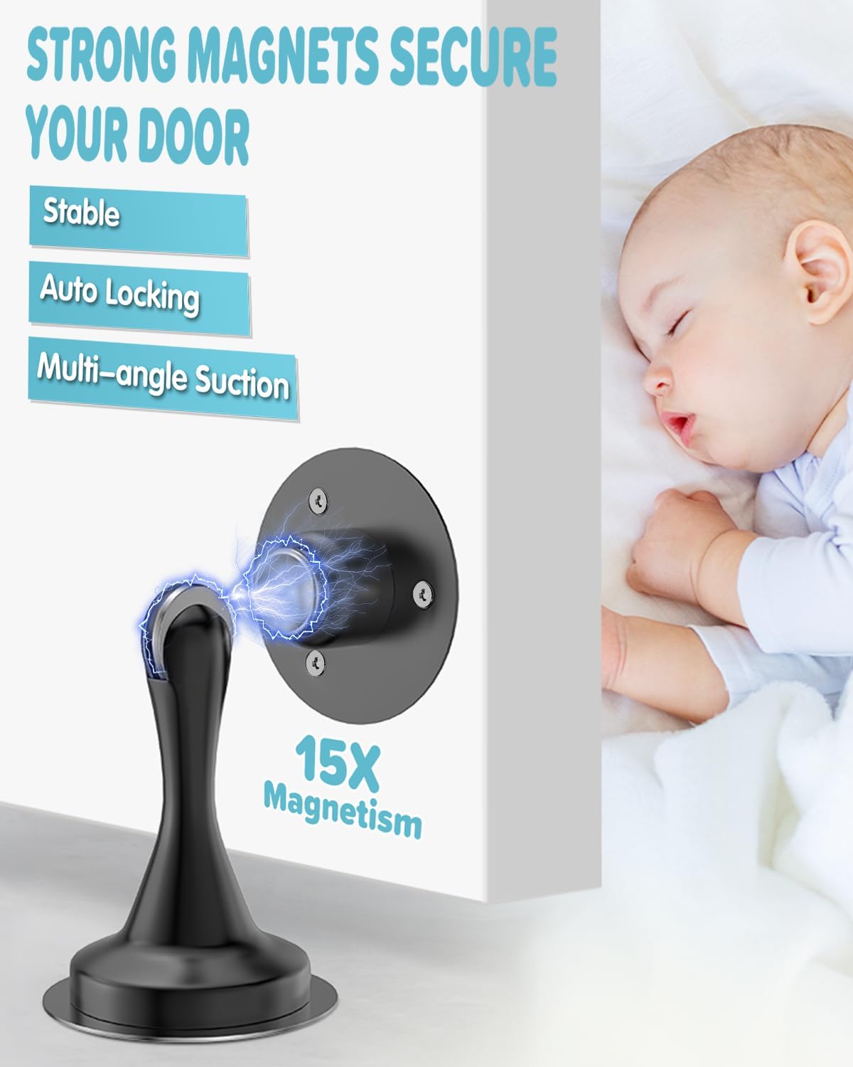 - [Enhanced Safety with Superior Magnetic Grip] Discover peace of mind with the HELEMAN Advanced Magnetic Door Stoppers, offered in a practical 1-pack. Designed to halt unexpected door slams from winds or accidental bumps, these stoppers serve as a discreet protector, keeping doors firmly open. Their soft-catch feature reduces noise and prevents damage to doors and walls, making them ideal for families with small children and pets by safeguarding against slamming doors