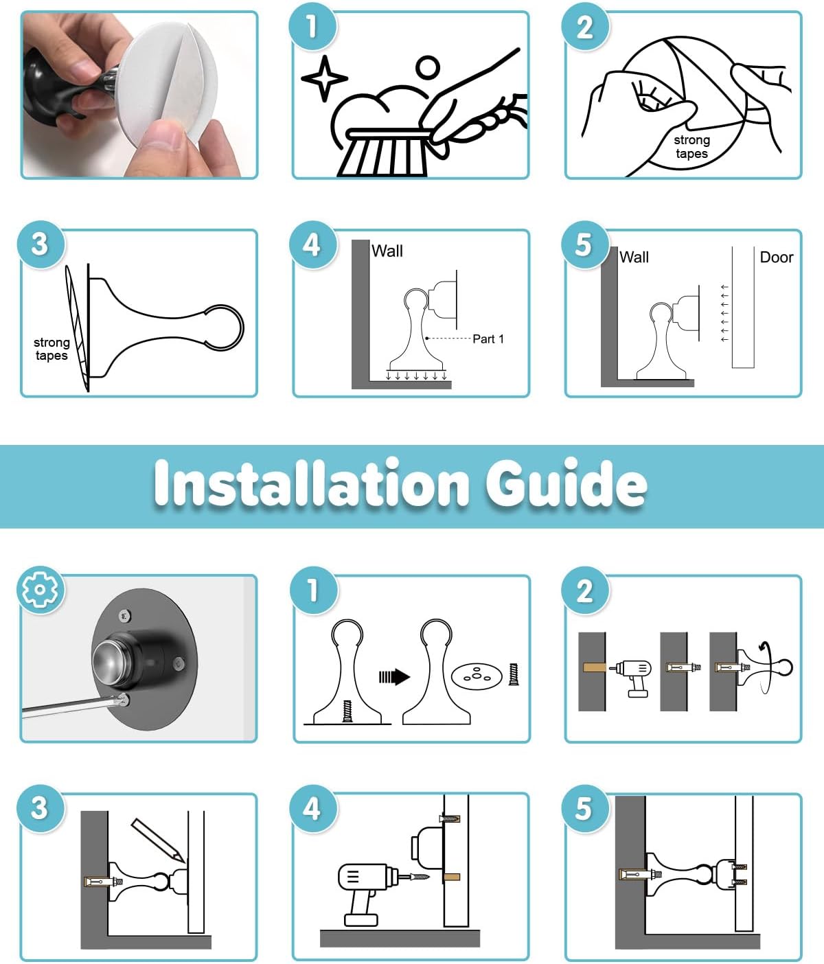- [Simple Setup & Durable Construction] Effortlessly install your HELEMAN Magnetic Door Stopper, perfect for door stoppers for wall and bottom of door, with screw-in or no-drill strong adhesive options. Crafted from premium stainless steel, these magnet door stops ensure long-lasting durability, having passed rigorous tests (10,000 times) to guarantee reliability. Ideal for any setting, they represent a smart, robust solution for keeping doors securely in place