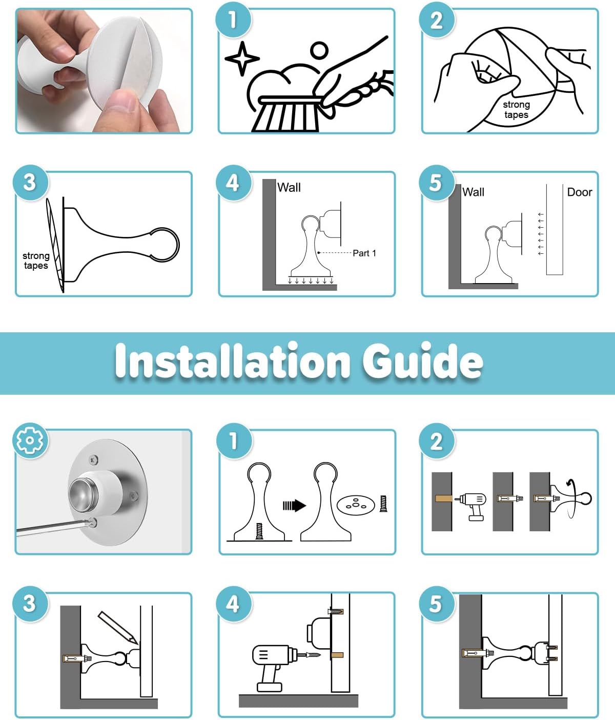 - [Simple Setup & Durable Construction] Effortlessly install your HELEMAN Magnetic Door Stopper, perfect for door stoppers for wall and bottom of door, with screw-in or no-drill strong adhesive options. Crafted from premium stainless steel, these magnet door stops ensure long-lasting durability, having passed rigorous tests (10,000 times) to guarantee reliability. Ideal for any setting, they represent a smart, robust solution for keeping doors securely in place