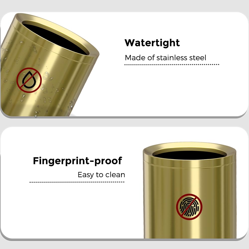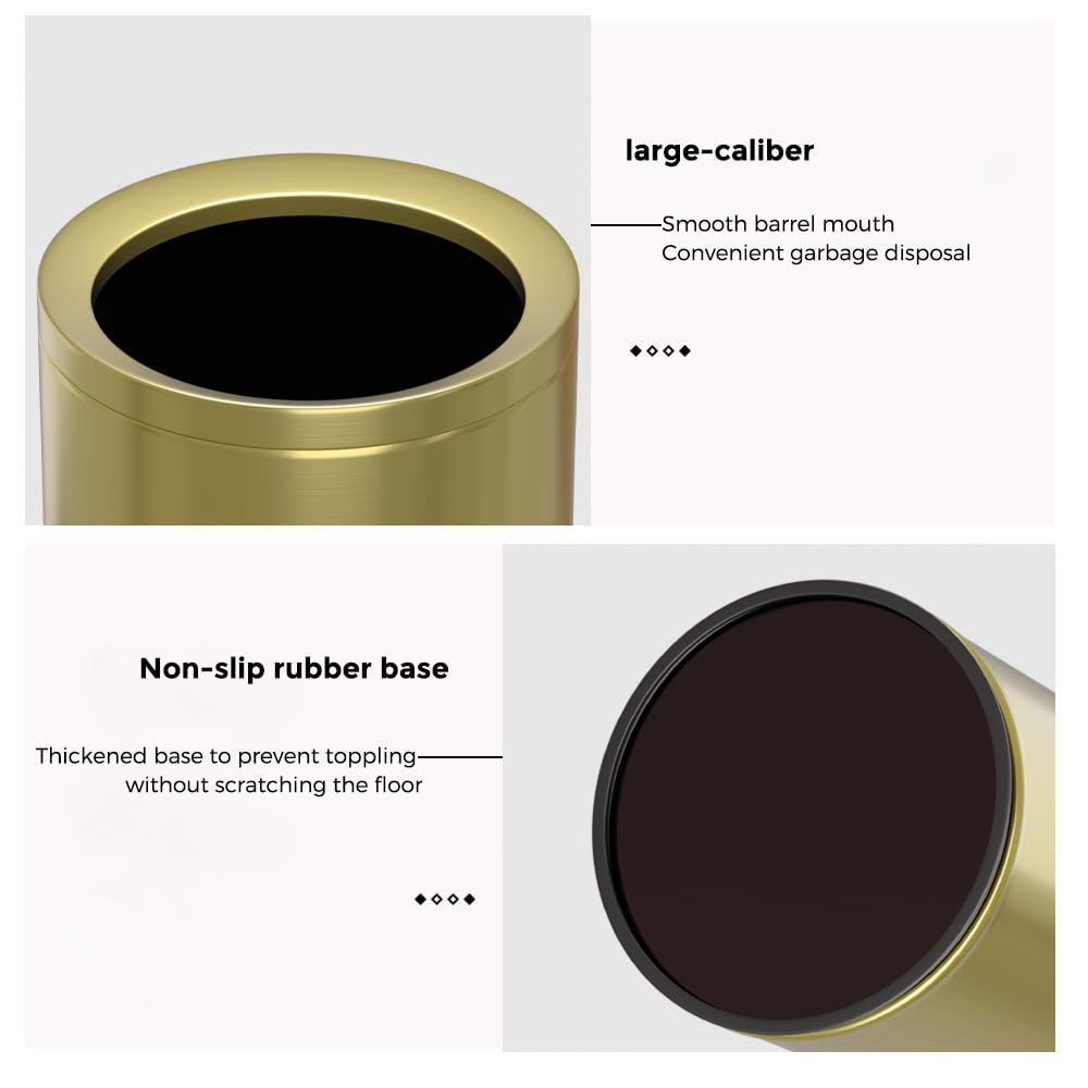 - [Metal material] : This garbage can is a double layer design, the outer layer is made of golden stainless steel, the inner layer is made of metal, and the double layer of metal makes the garbage can more thick and durable.