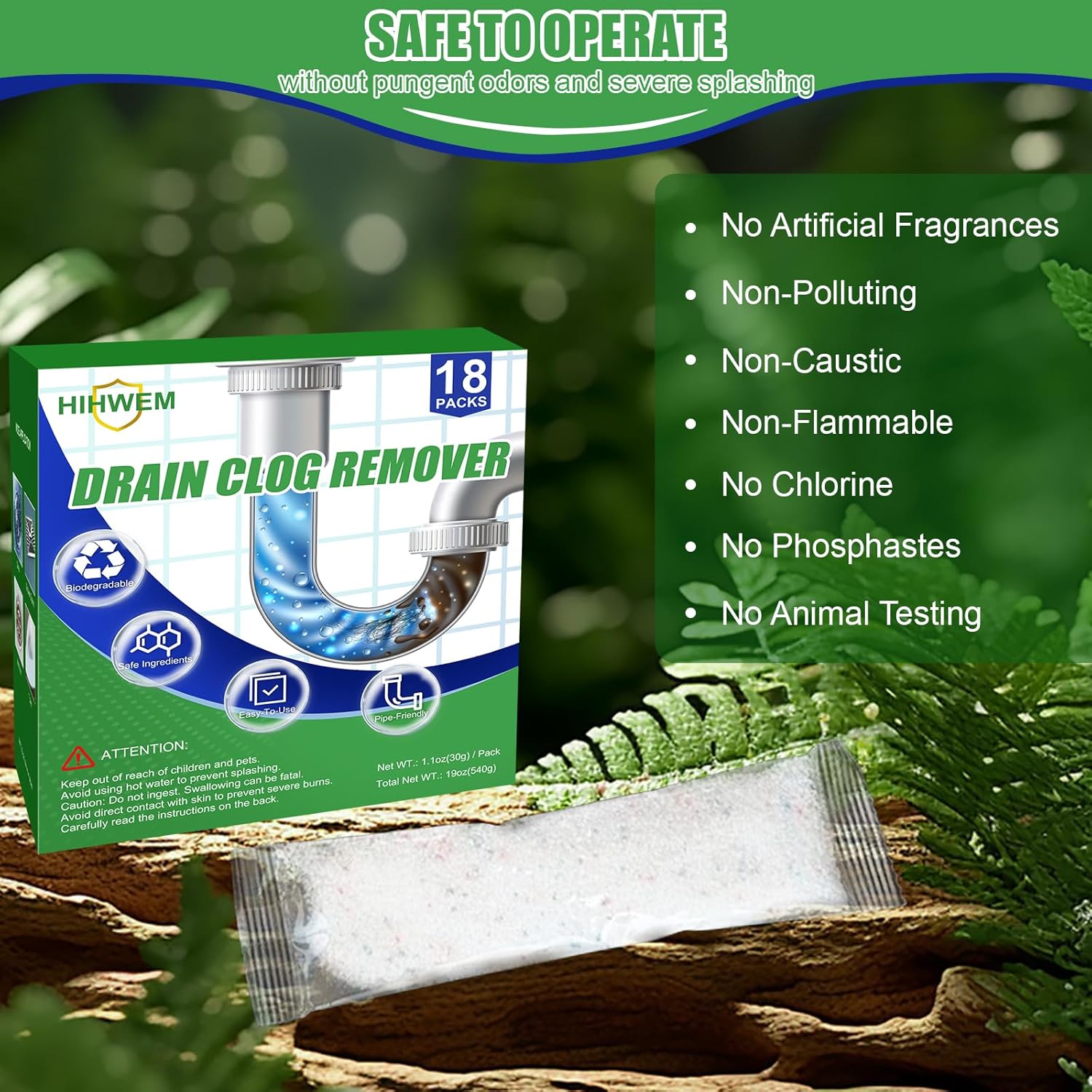 Drain Clog Remover Powder Sink Drain Cleaner for Hair and Grease, 18-Packs Heavy-Duty Powerful Kitchen Sink and Shower Unclogger, Pipe-Safe
