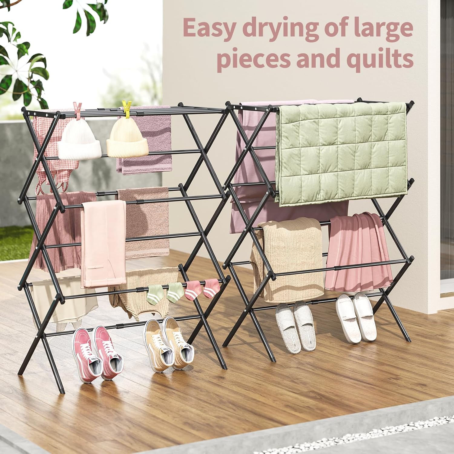 - Material: The APEXCHASER clothes drying rack is made of all metal and has a rust-resistant coating, which can endure different weathers for indoor and outdoor use, making it perfect for apartments or small living spaces.