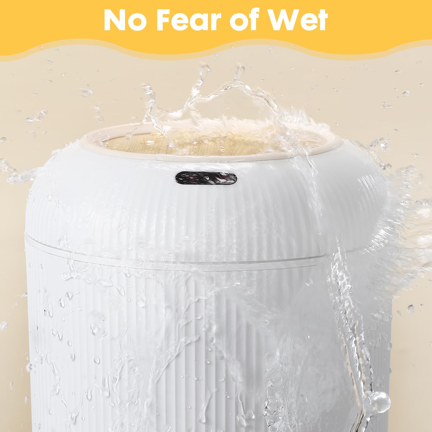 - 【 Durable & Quiet 】This touchless trash can is made of high-quality ABS material, which is sturdy and durable. IPX6 waterproof, suitable for the dampness of the bathroom. The lid opens and closes quietly, ensuring you won't disturb others.