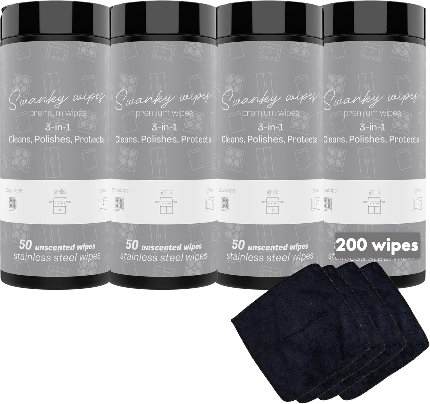 - PRODUCT SPECS - Swanky Stainless Steel Cleaning Wipes come in a pack of 200 soft, non-scratch wipes. Each wipe is pre-moistened and ready to use, making them a convenient addition to your cleaning supplies. Ideal for keeping your stainless steel appliances looking polished and clean.