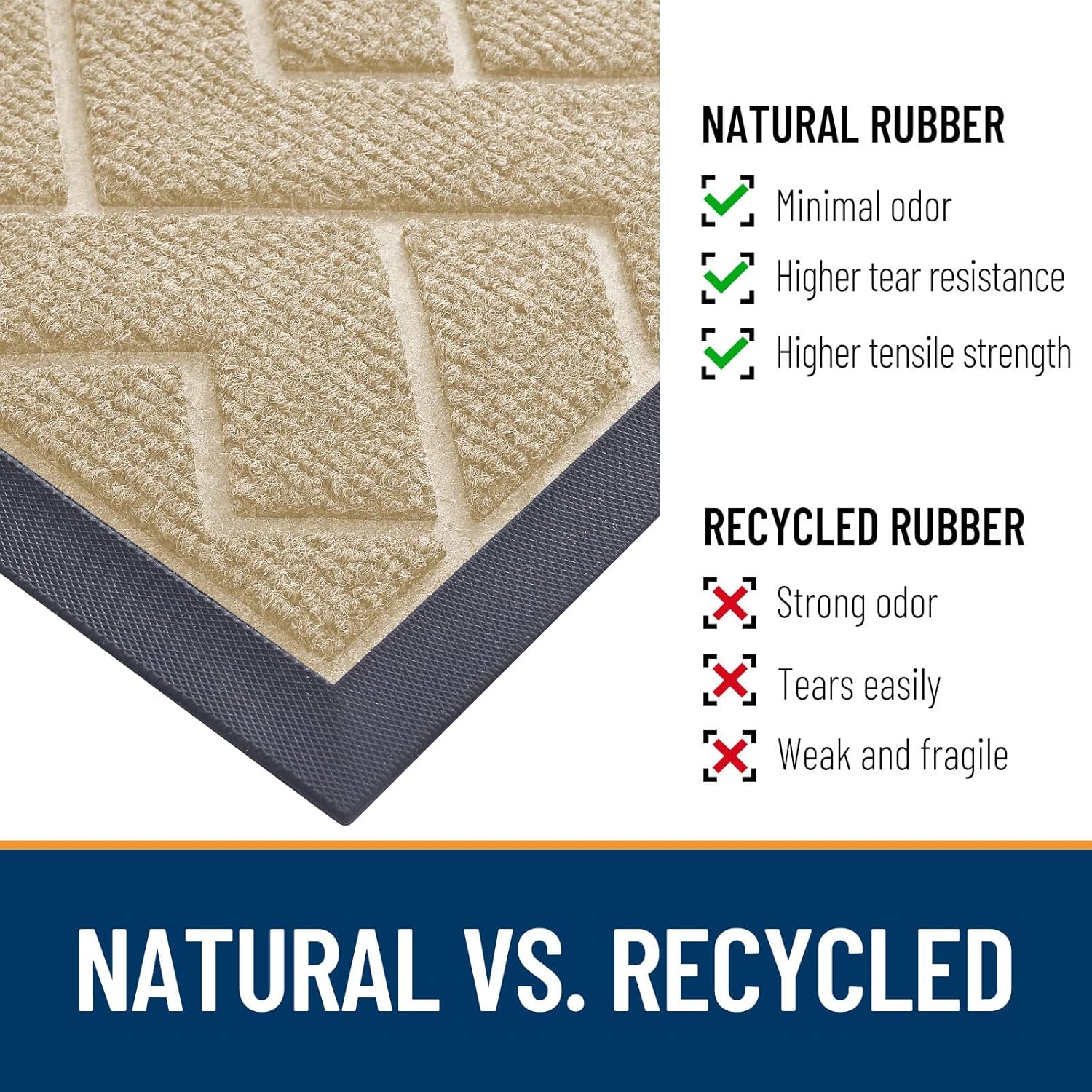 - [STURDY NATURAL RUBBER BACKING] The OLANLY heavy-duty door mat features an ultra-thin design, allowing it to effortlessly glide under most doors without jamming or curling. Crafted with a sturdy natural rubber backing, our product offers higher tensile strength, increased tear resistance, and less odor compared to synthetic rubber.