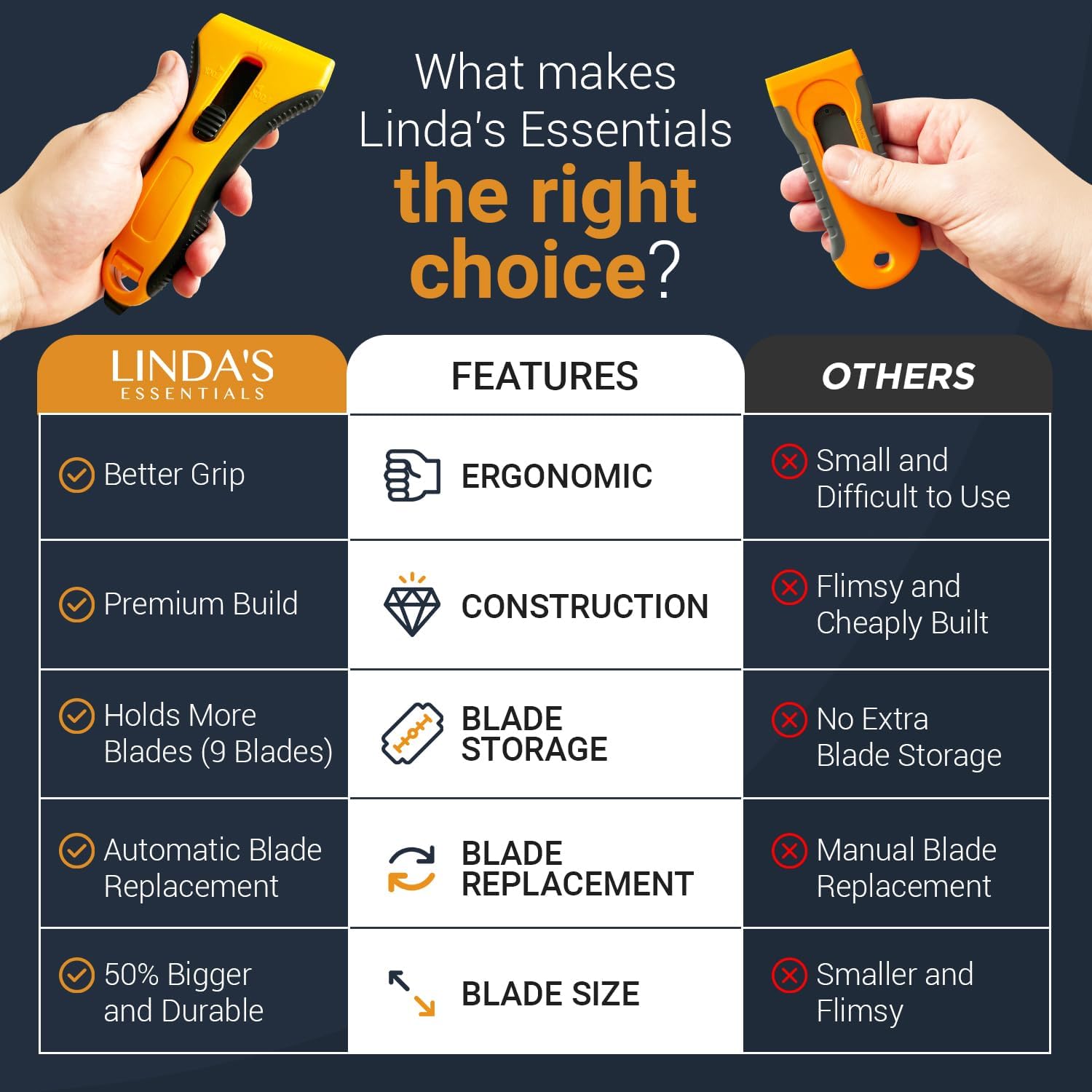 - UNMATCHED DURABILITY AND PERFORMANCE: Meet the ultimate Razor Blade Scraper Tool - built to handle tough tasks with ease. Crafted with a robust, high-quality design, it offers a stable, reinforced grip that outlasts flimsy alternatives. Sturdy enough for heavy-duty jobs yet gentle on delicate surfaces, our Razor Scraper Tool is a reliable, long-lasting addition to any cleaning toolkit