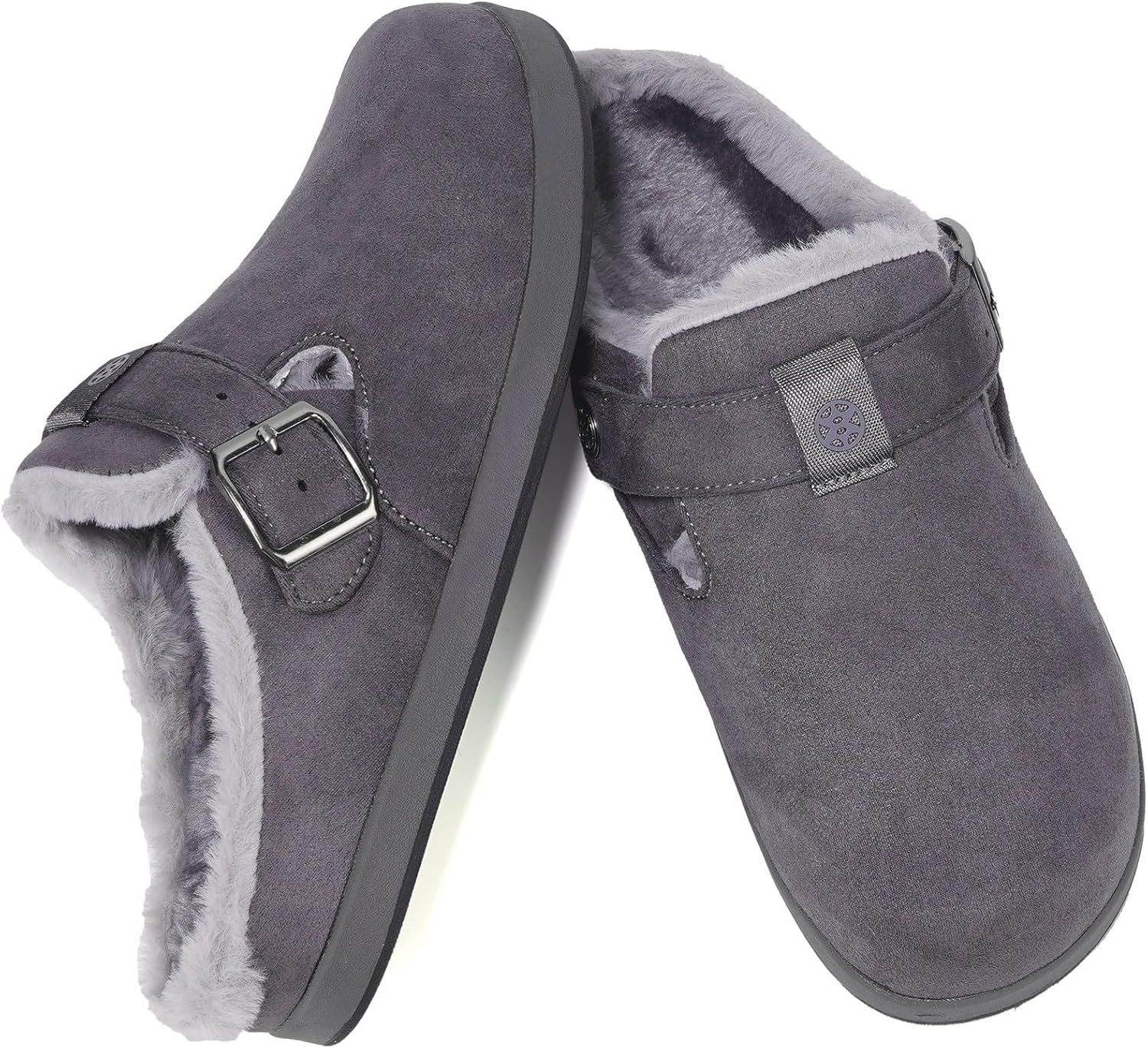 Fur Lined Clogs for Women Men Suede Winter Slippers Arch Support Slip on Mules Potato Shoes with Removable Cushion Footbed Warm Home House Shoes