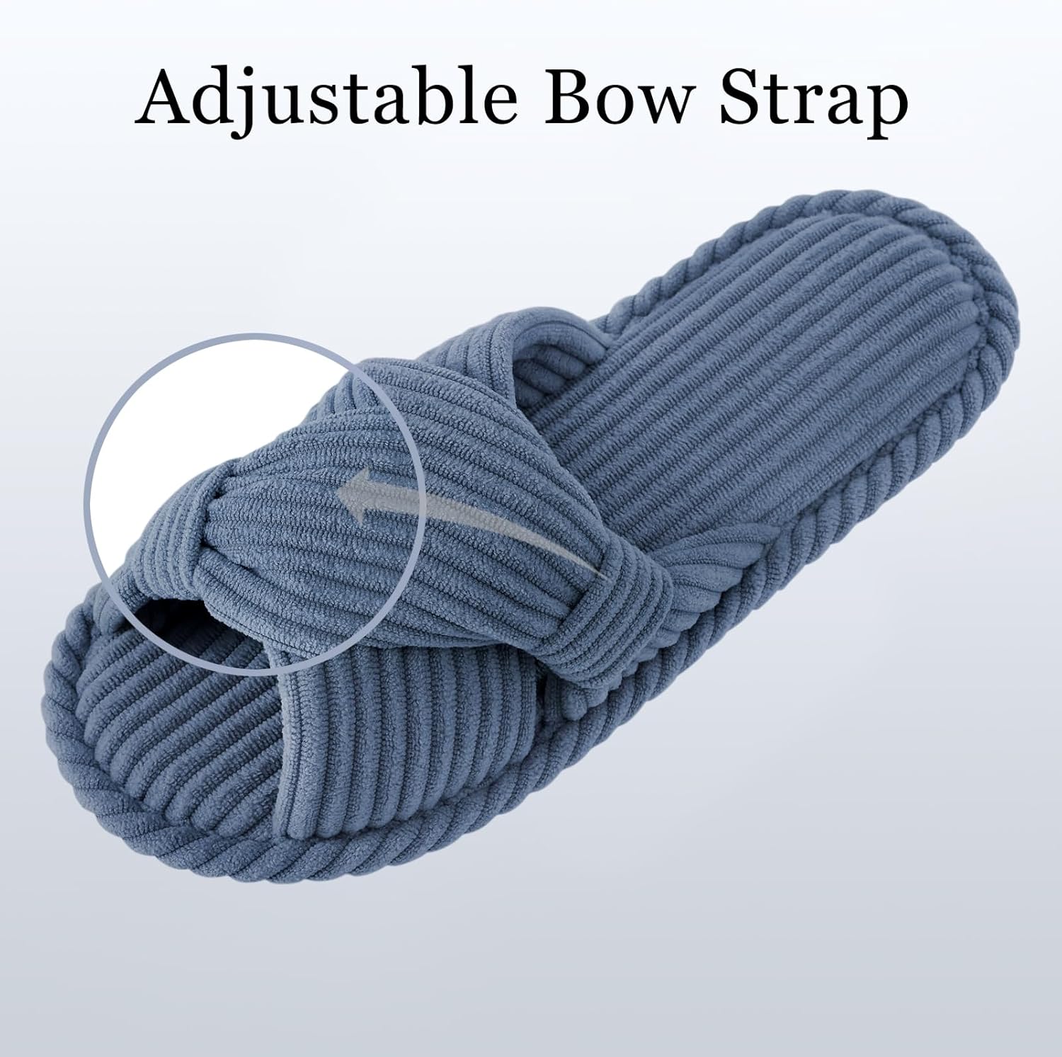 - Breathable Bow Slippers: Crafted from luxurious corduroy fabric, our stylish cross-band slippers are cute and functional, they are tied in in a unique and classic bow design, elegantly wrap around your feet while ensuring optimal ventilation to prevent sweating.
