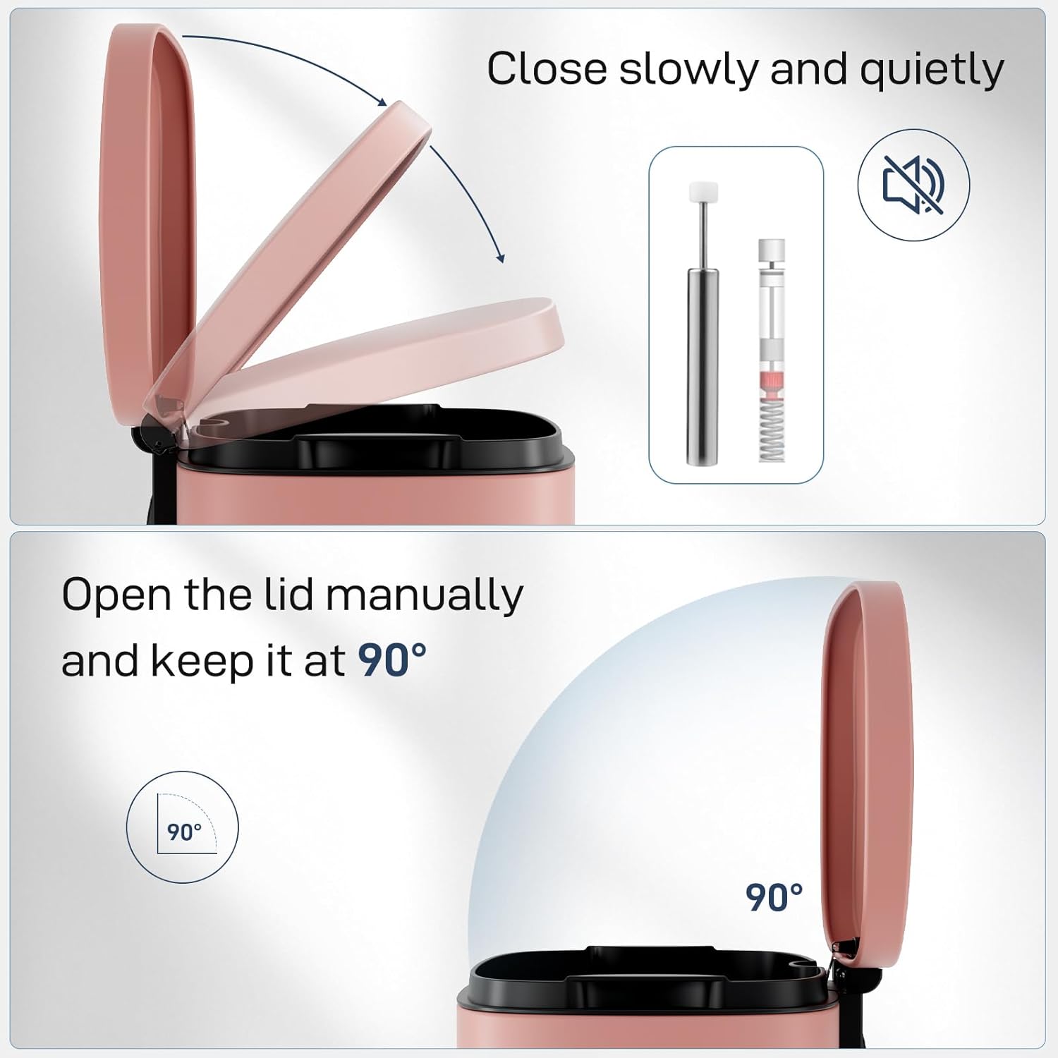 - 【WON'T DISTURB YOU】Using ABS hydraulic deceleration technology, the trash can lid can be slowly and gently closed when the pedal is released, without making a lot of noise, and it will not disturb your family when disposing of garbage.