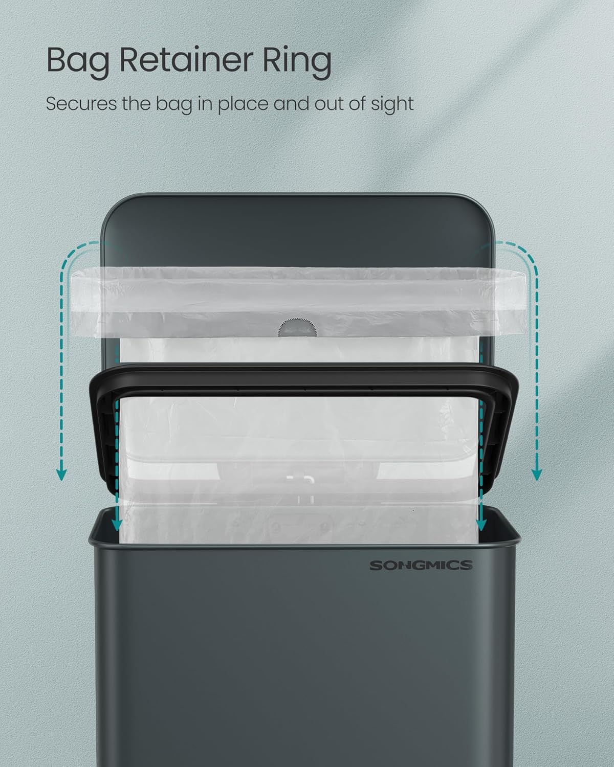 - [15 Garbage Bags Included] To get you started, we've included 15 custom-fit SONGMICS trash bags (code 050A), designed to perfectly fit this step trash can