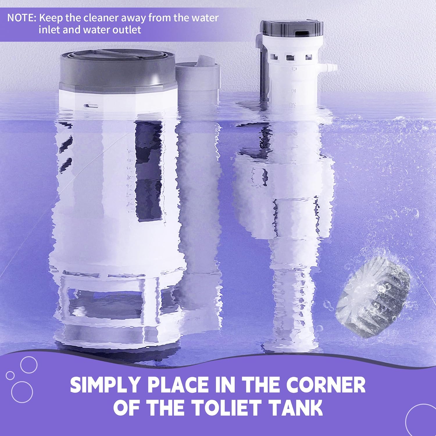 - Easy to Use: Simply place a piece of toilet tank cleaner tablet into the tank (away from the spout and inlet) and let it fully dissolve for at least 30 minutes;(Please note, do not remove the water-soluble transparent protective film)