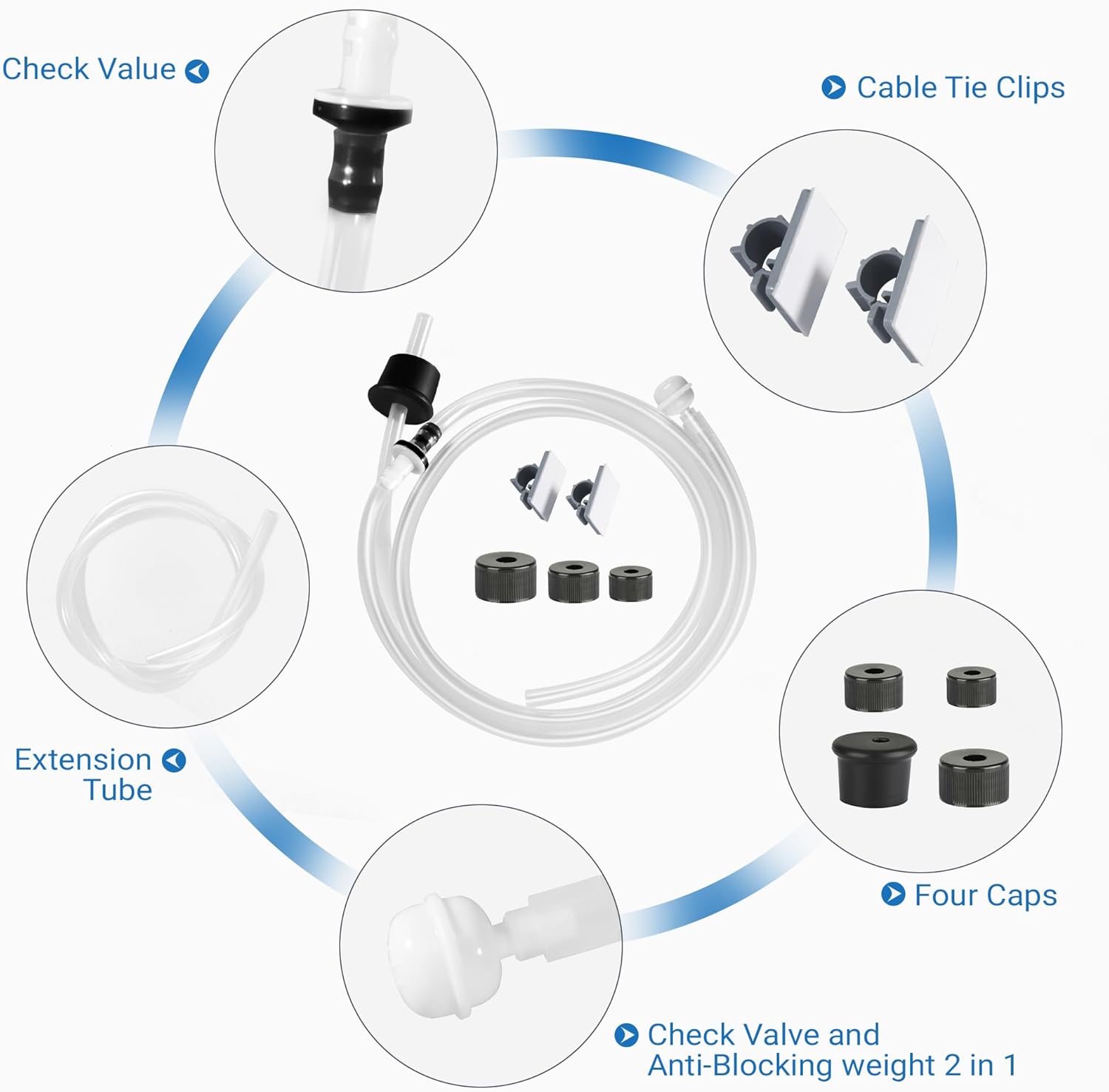- EXCELLENT DESIGN: 4 multiple caps to fit most dish soap bottles. A check valve and Anti-leak accessories keep soap primed for a longer time.