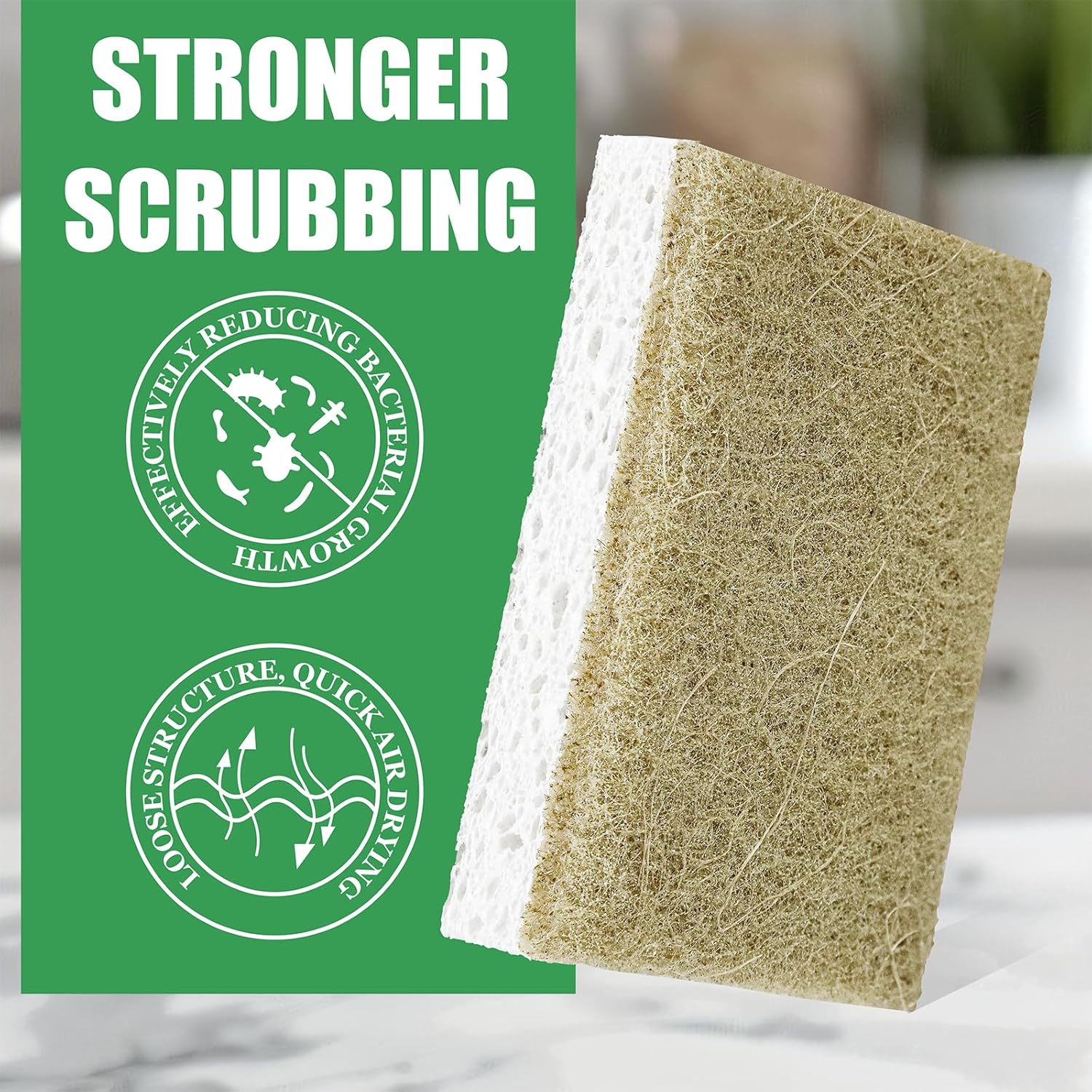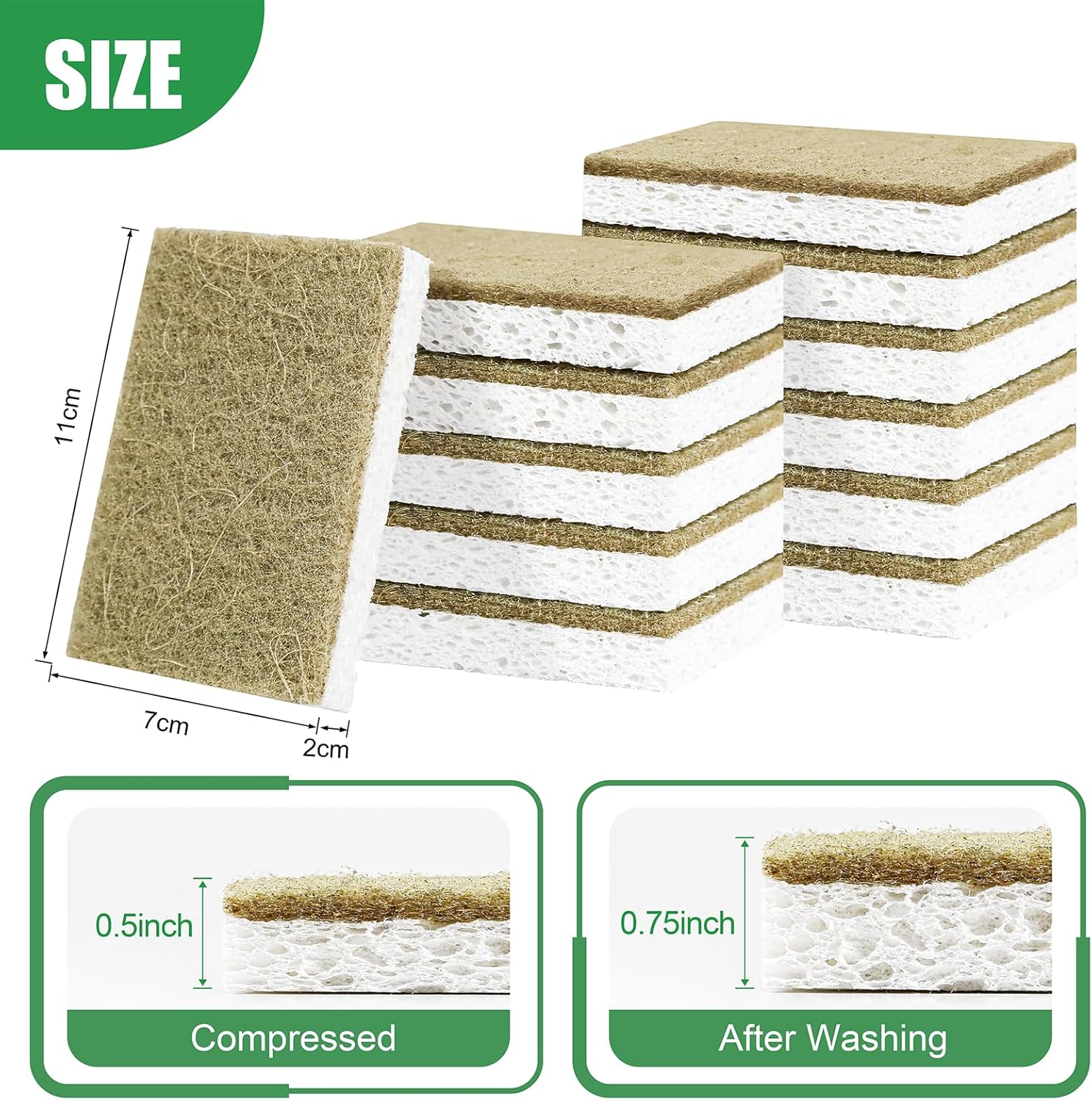 - Non-Scratch Power: Dual-layer cleaning sponges feature a gentle cellulose side and a tough coconut fiber layer to scrub off grime without damaging glass, ceramics, or non-stick cookware.
