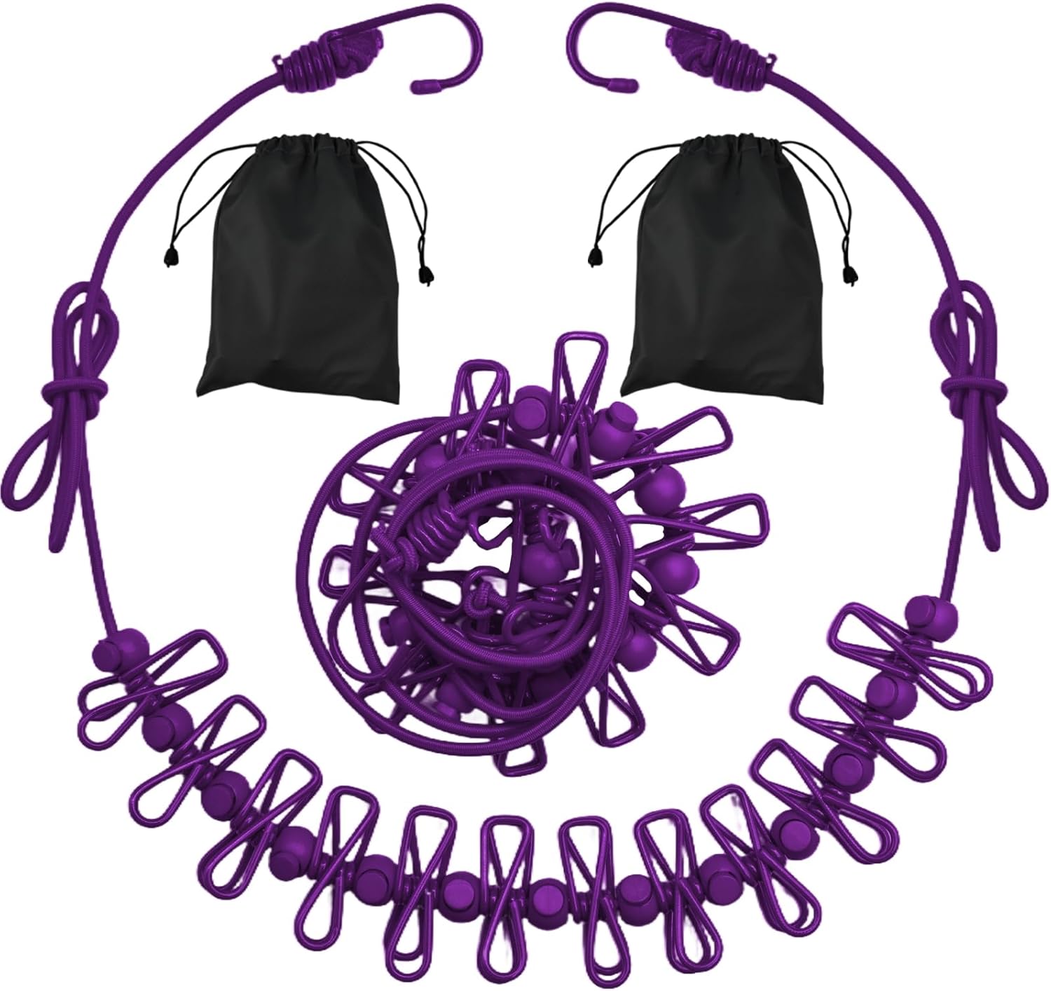 - [Innovative Design] The travel clothesline features 12 clothesline clamps and 13 windproof, non-slip clamps, all designed with a positioning bead. Our sturdy elastic rope supports heavy clothing more effectively than other clotheslines.
