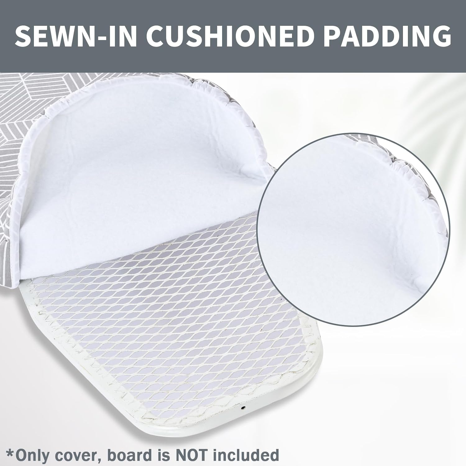 - SUITABLE FOR SMALL IRONING BOARD: This ironing board cover is updated for board to a width of 12 to 13 inches and a length of 36 to 37 inches. Suitable for over the door ironing board. Please measure the size of your board before purchasing. Note: Ironing board is NOT included