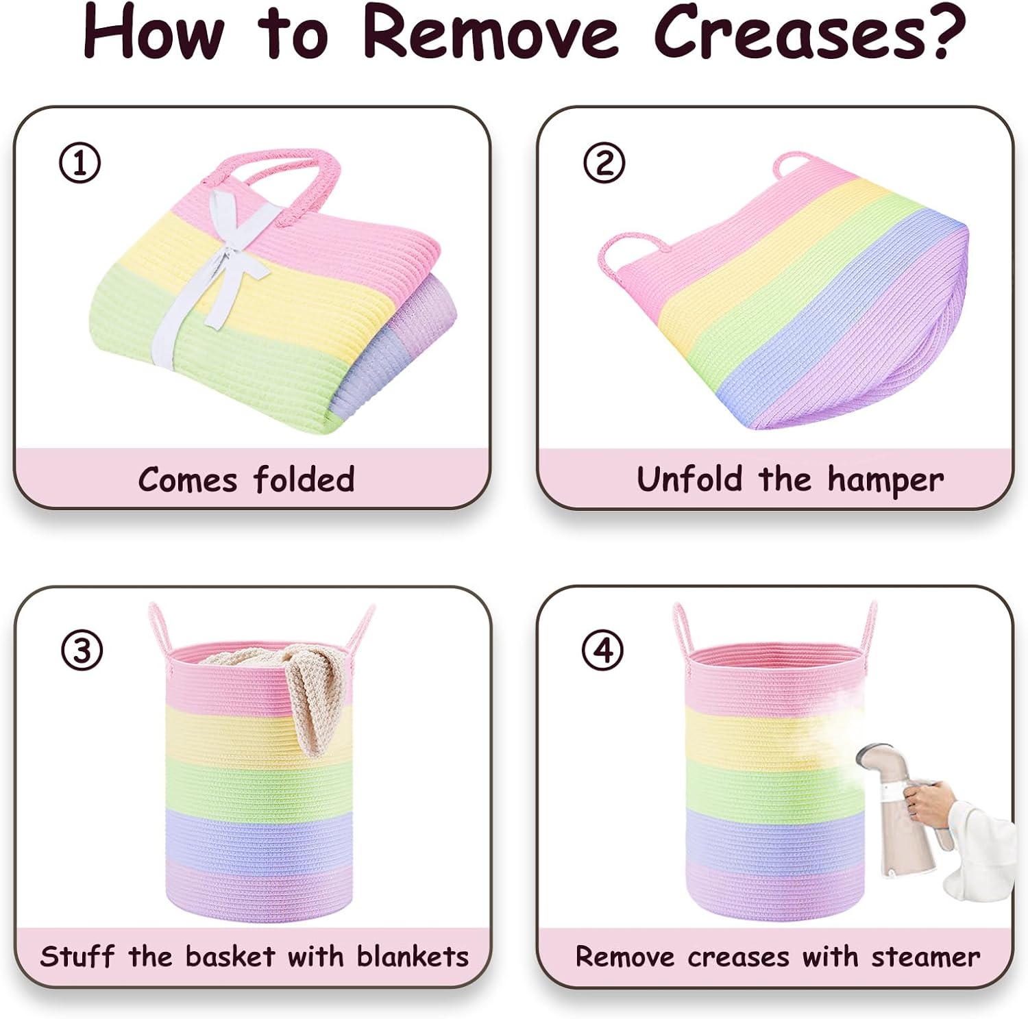 - ❤【Restore Elegant Shape】 To improve shipping efficiency, foldable woven rope hampers are packed compactly. You can put some blankets or small quilts in it and give it some time to regain its shape. Iron is a great idea to remove the creases.