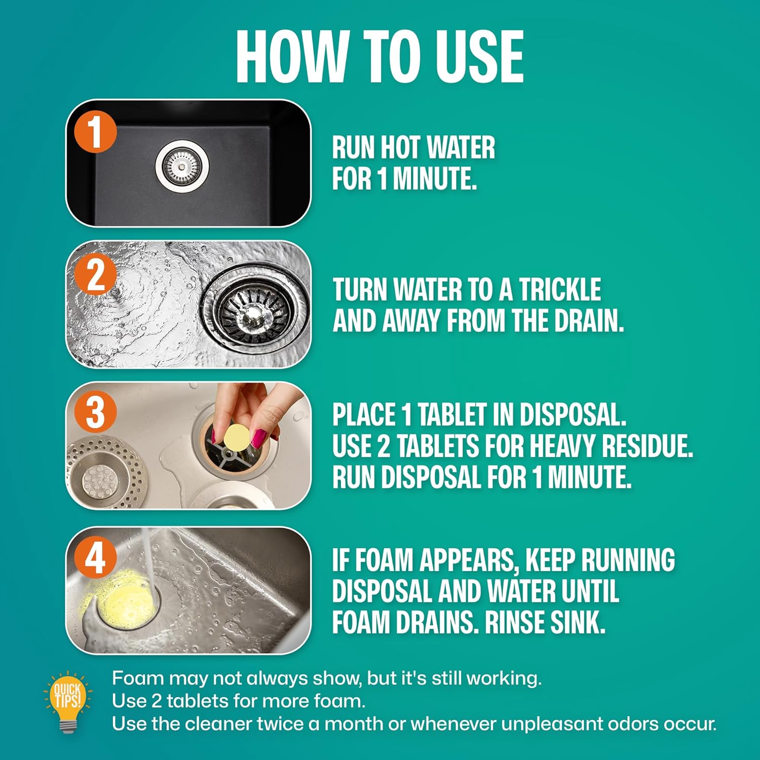 - Deep Clean: Keep your kitchen fresh with these foaming garbage disposal cleaner tablets. Removes grime and buildup effectively.