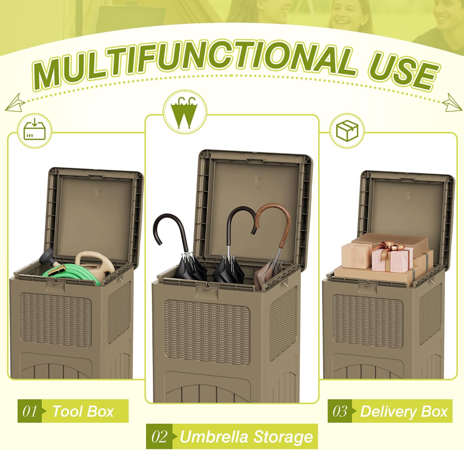 - Multi-Functional Use: This resin outdoor trash can withstand the effects of various outdoor elements, preventing the entry of water and dust. It can also be used as an outdoor storage bin, suitable for patio, swimming pool and other multi-scenario use needs.