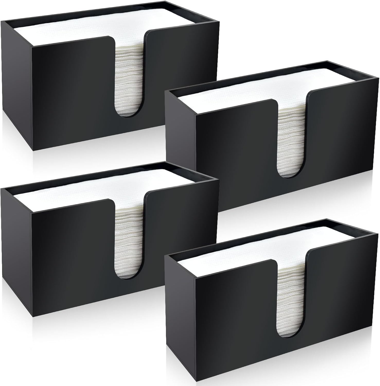 4Pack Black Acrylic Countertop Paper Towel Dispenser, Napkin Dispenser, Multifold Acrylic Paper Towel Dispenser for Z Fold C Fold Trifold Paper Towels for Bathroom Toilet Kitchen Restaurant (4)
